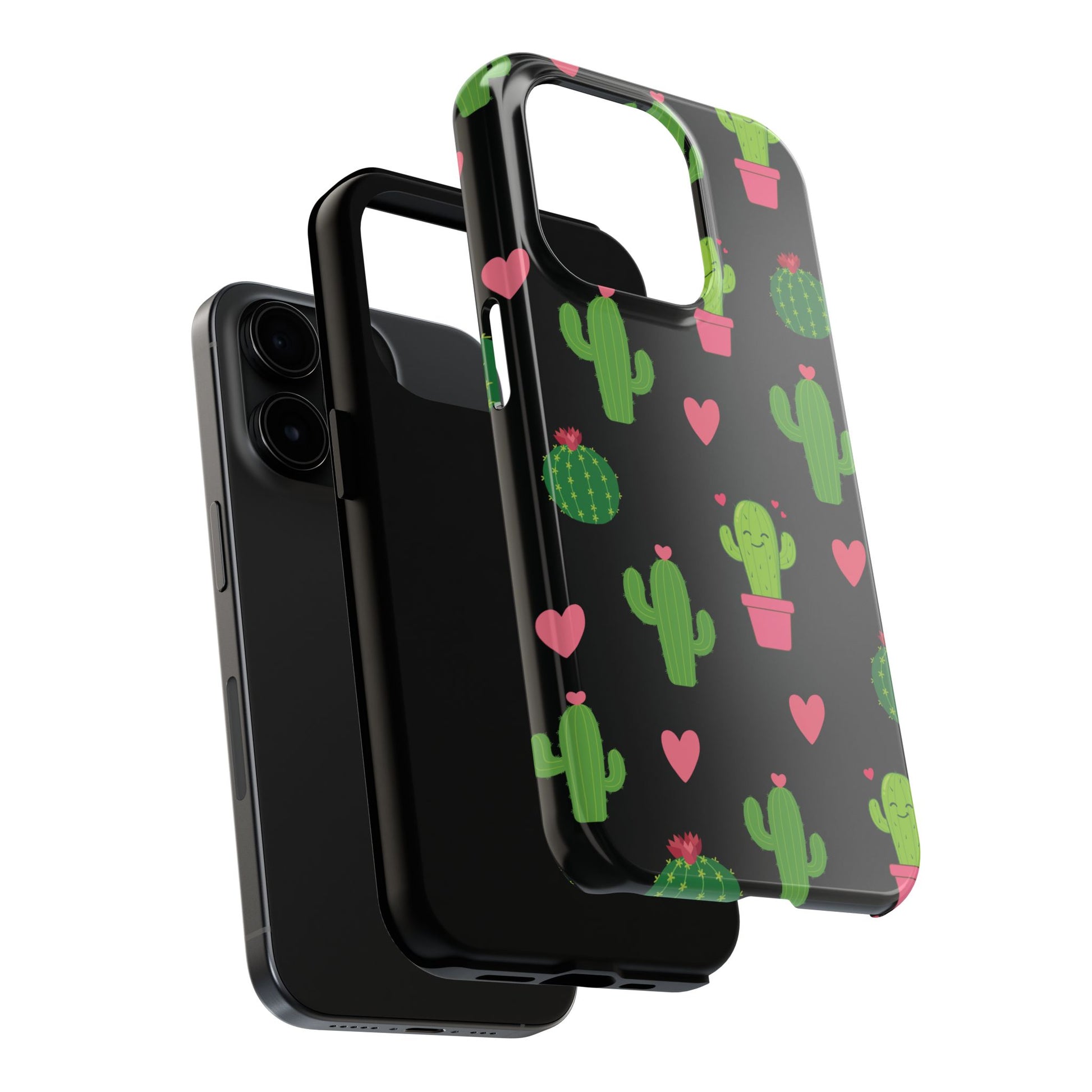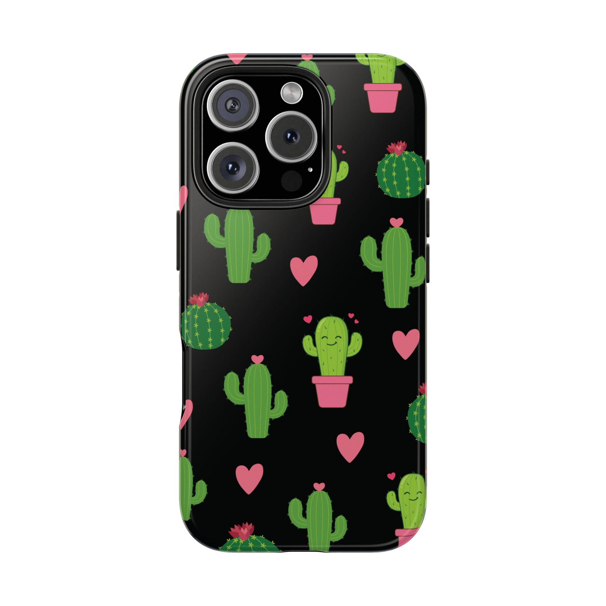 This black iPhone case featuring cactus and pink hearts pattern makes it desert chic. Whether you're a plant lover, cactus collector, or someone who simply adores cute and modern designs, this phone cover is made to match your personality.