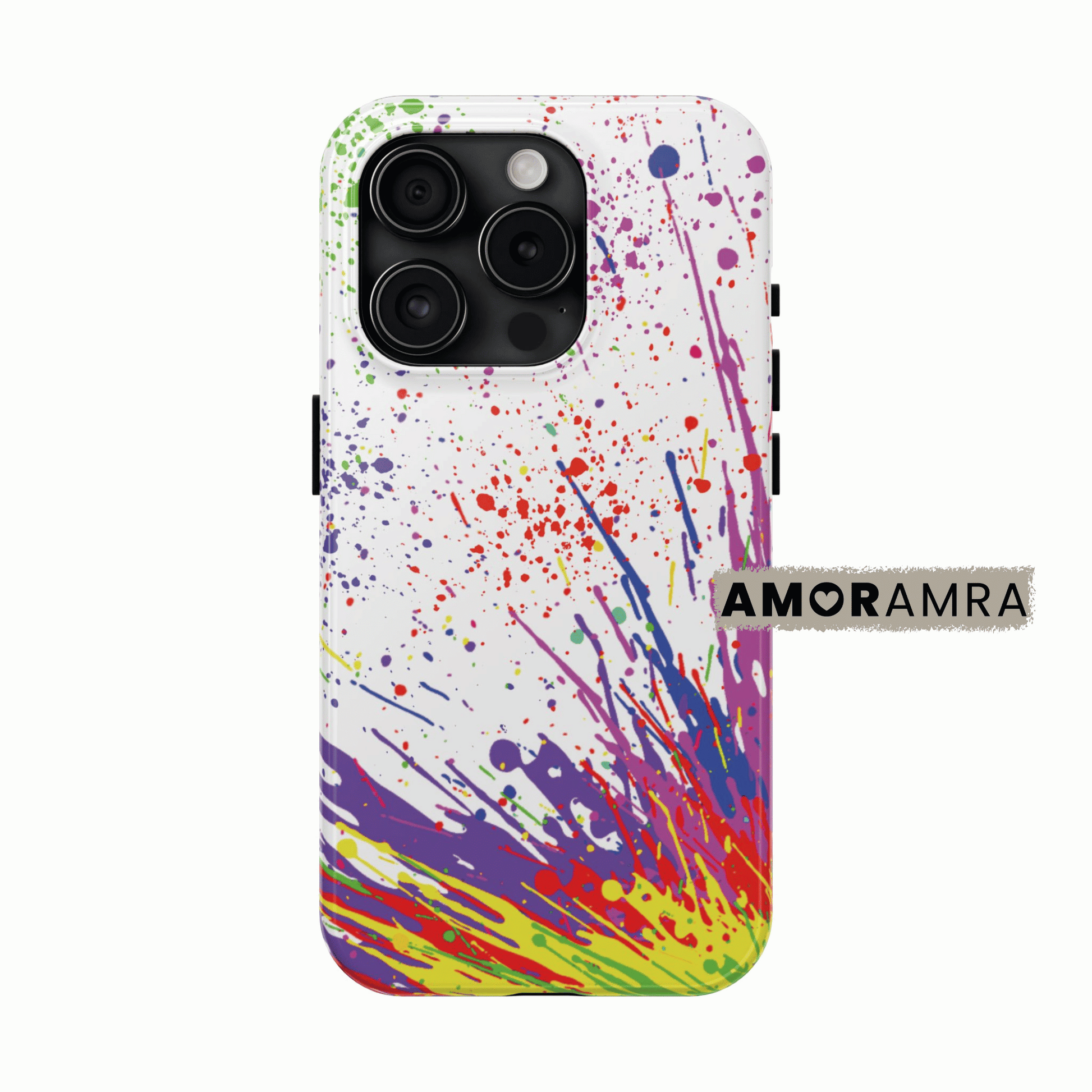 Make a bold statement with this vibrant paint splatter iPhone case, featuring an energetic explosion of rainbow colors across a white background. Designed to capture the spirit of creativity, chaos, and fun, this artistic phone cover is perfect for artists, color lovers, and anyone who wants their phone to reflect their bold personality.