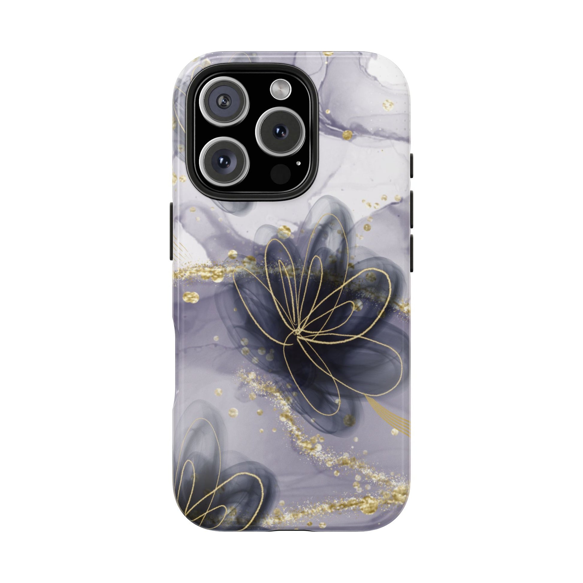 Add a touch of elegance and artistic charm to your phone with this black and gold floral iPhone case, featuring a dreamy marble-inspired background and luxurious gold accent details. This abstract art phone cover beautifully blends modern sophistication with timeless floral design, making it the perfect accessory for women who appreciate high-end style and feminine aesthetics.