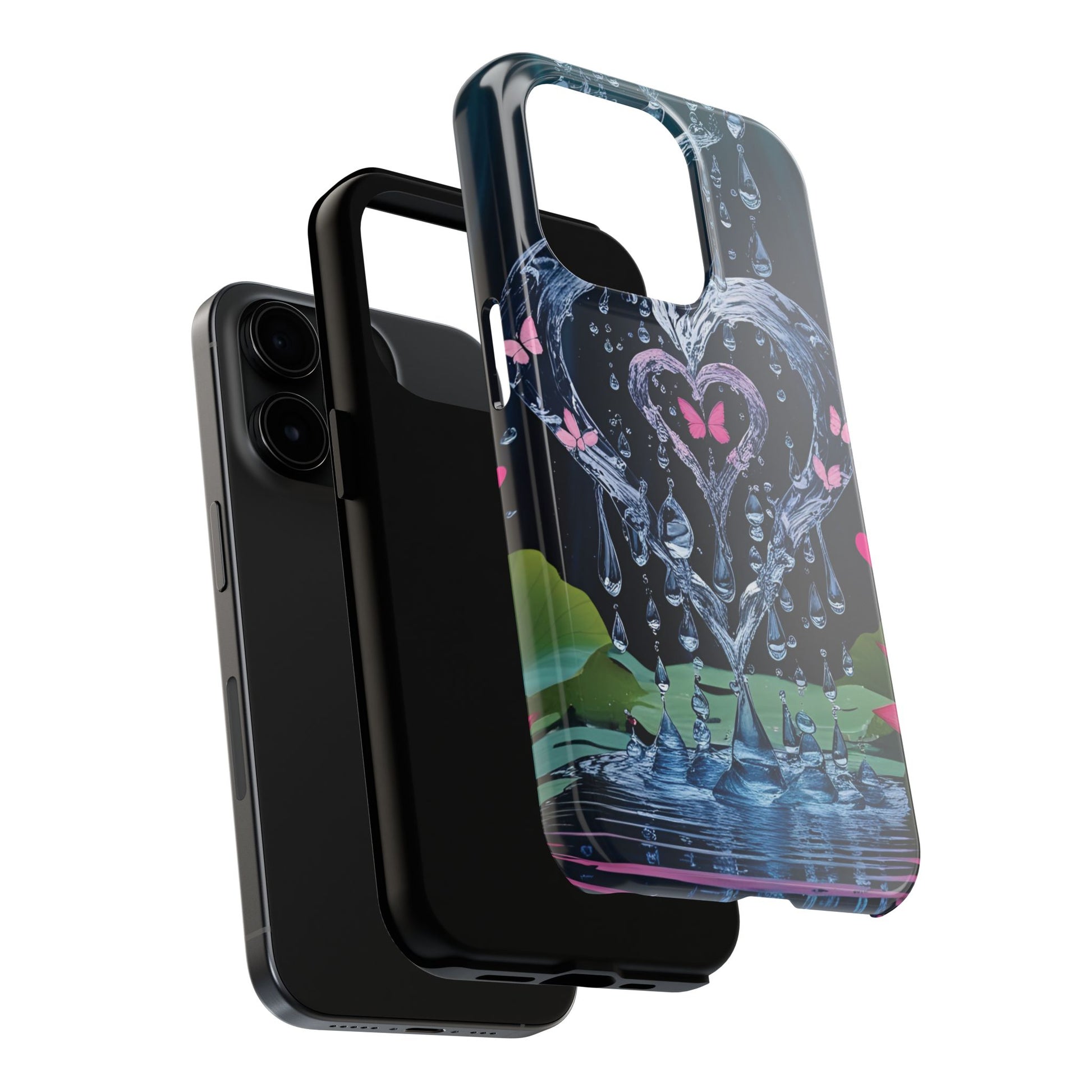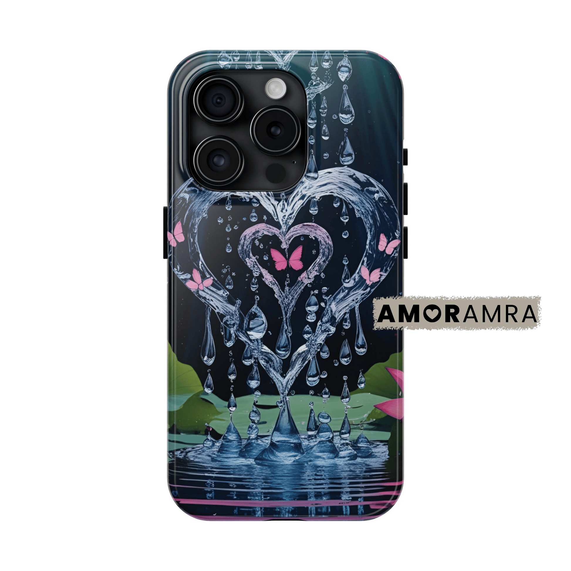 Indulge your iPhone in luxury with this exquisite case featuring a crystal-clear water heart surrounded by delicate pink butterflies and lotus flowers. Crafted for those who love elegant, artistic designs, this slim yet protective cover offers sophisticated style and premium protection. Elevate your iPhone with this unique, nature-inspired accessory that radiates elegance and charm.