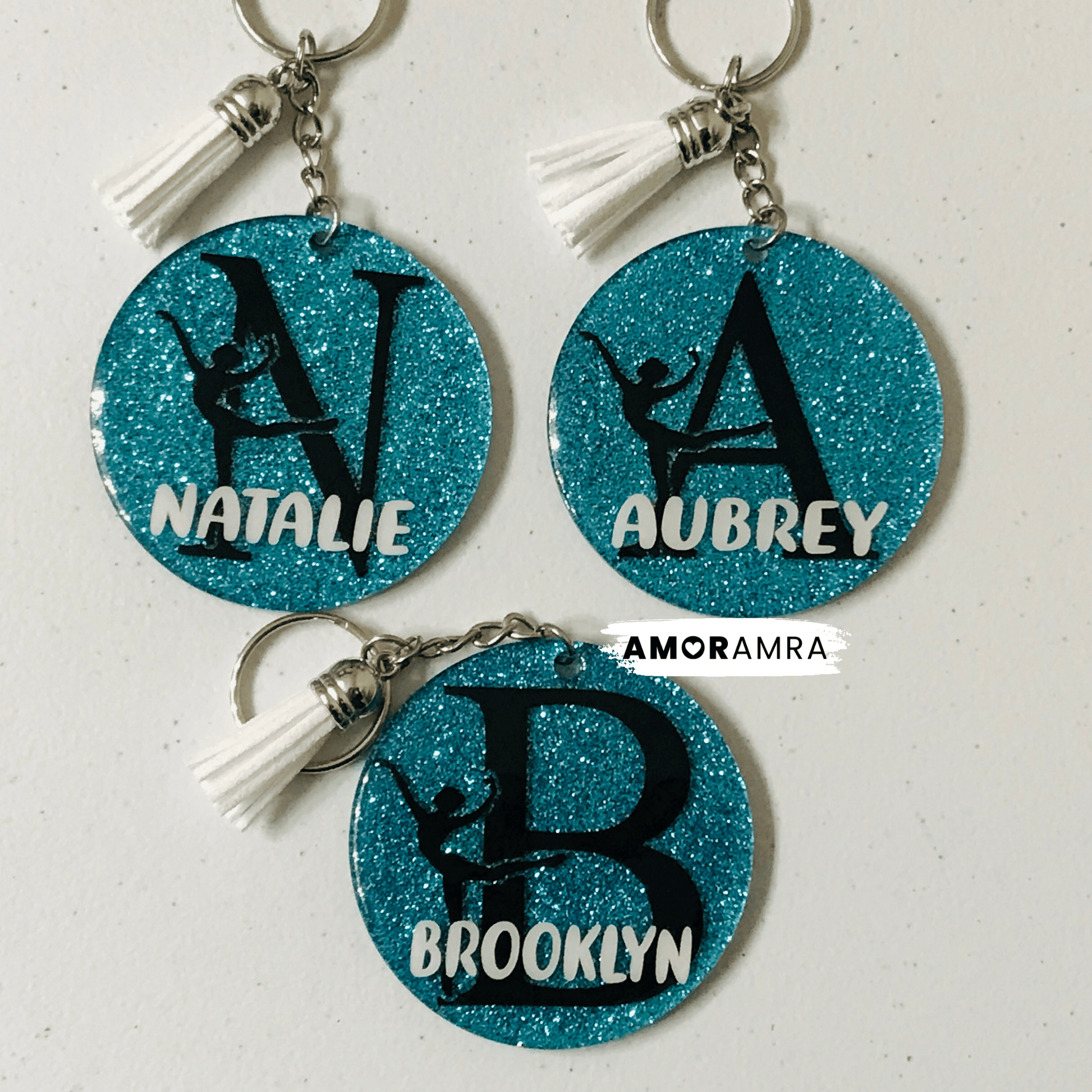 A handmade personalized glitter dance ballet keychain just for you. Perfect for dance gift bags, dance moms, ballet teams, backpacks, bag tags etc.