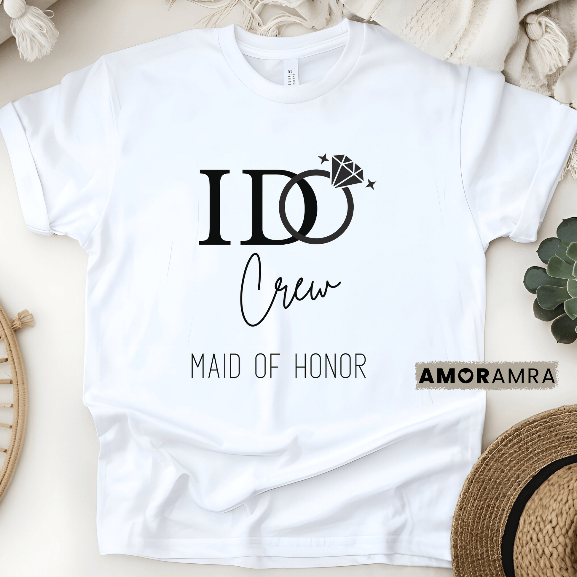 Celebrate the bride in style with this "I Do Crew" Maid of Honor T-Shirt! This bridal party shirt is the perfect choice for bachelorette parties, wedding weekends, and bridal showers. It makes a perfect maid of honor proposal gift, and pairs beautifully with bridesmaid shirts (also available) for a coordinated wedding party look.