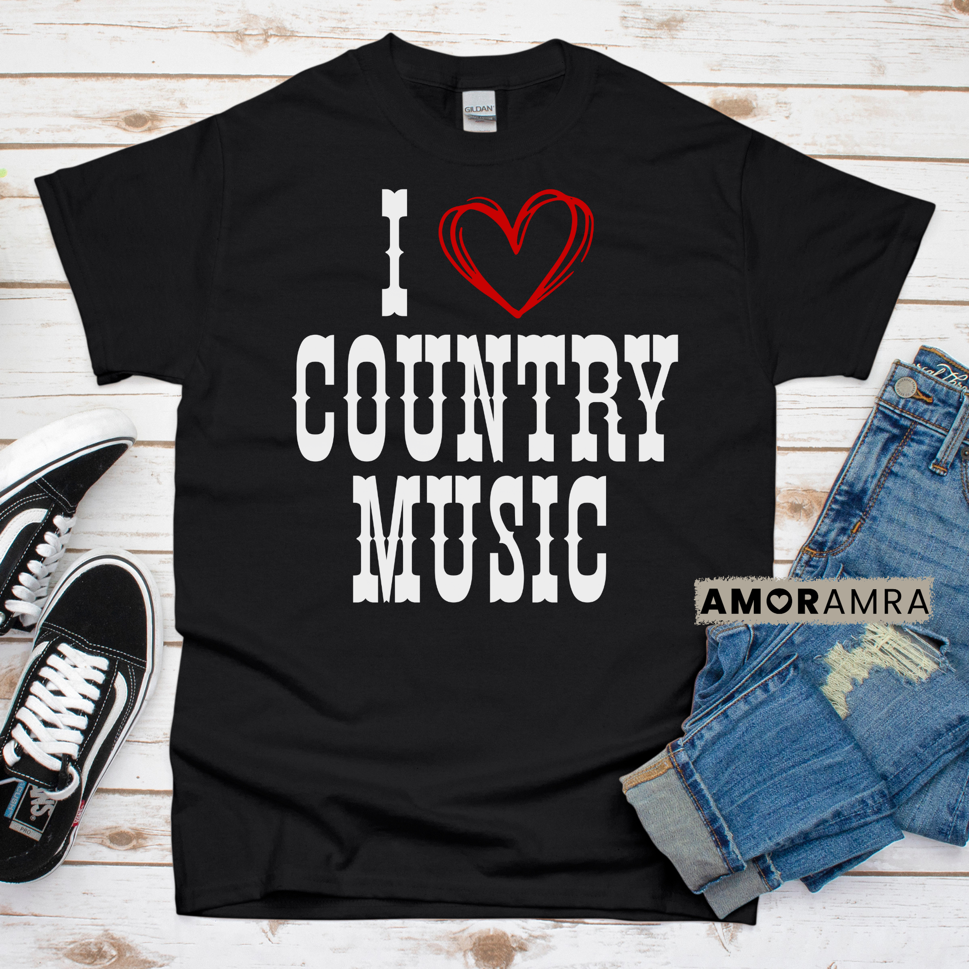 🤠💖 Show Your Love for Country Music! Whether you’re a proud country music lover or just love everything about the country life, this "I Love Country Music" T-shirt is the perfect addition to your wardrobe. Celebrate your southern charm, western pride, and country music love with this stylish and fun tee!