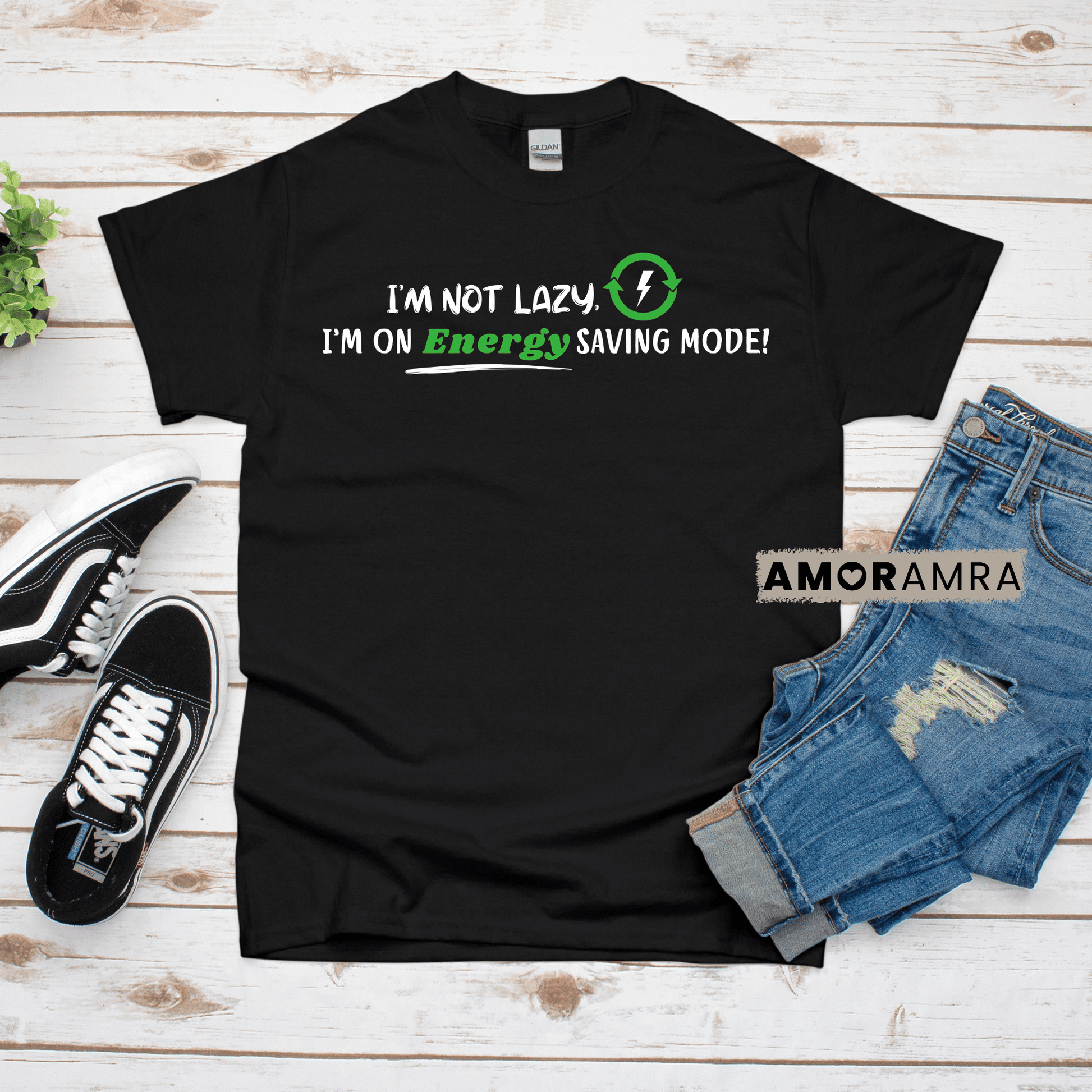 The 'I'm Not Lazy, I'm on Energy Saving Mode' t-shirt is perfect for those days when you just want to take it easy. This funny lazy shirt is a must-have for anyone who enjoys a good laugh and values comfort. Whether you're lounging at home, running errands, or just taking a break from adulting, this humorous graphic tee is ideal for every occasion. The perfect gift for introverts, couch potatoes, or anyone who appreciates a bit of funny, relatable humor.
