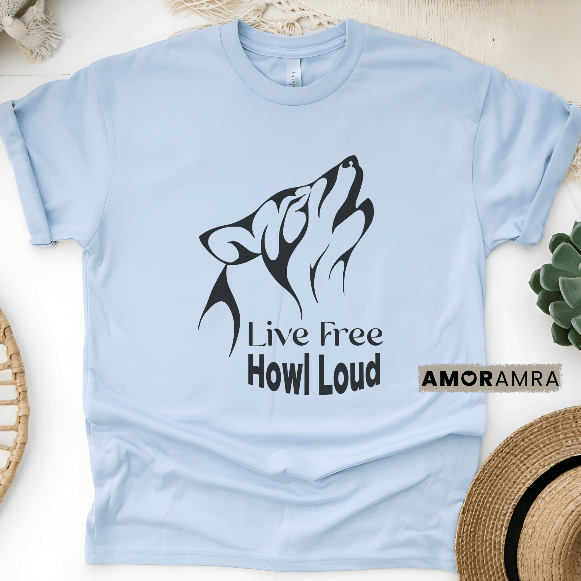 The 'Live Free Howl Loud' t-shirt, featuring a bold wolf howling design is perfect for those who live life on their own terms, with a free spirit and untamed energy. Ideal for nature lovers, animal enthusiasts, or anyone who celebrates independence and freedom, this howling wolf t-shirt is a must-have.