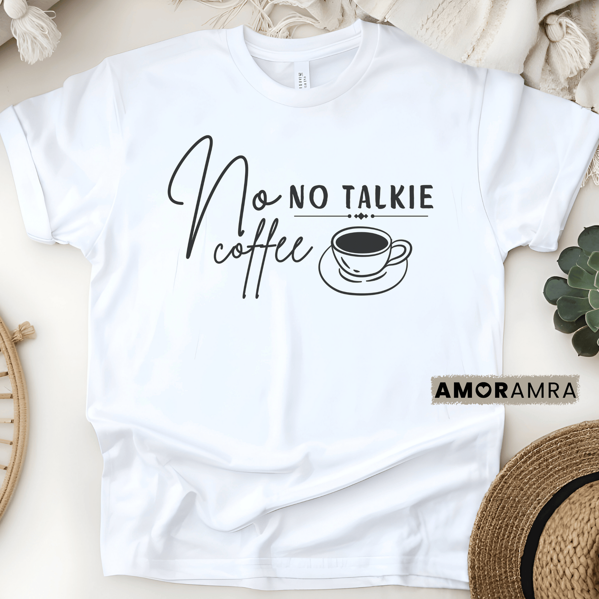 The 'No Coffee No Talkie T-Shirt' is the perfect funny coffee lover shirt for coffee addicts, baristas, and caffeine enthusiasts. It is an ideal morning person shirt with coffee humor. This caffeine-themed shirt makes a great coffee lover gift idea for birthdays, holidays, or any occasion where a little caffeine-inspired humor is needed.