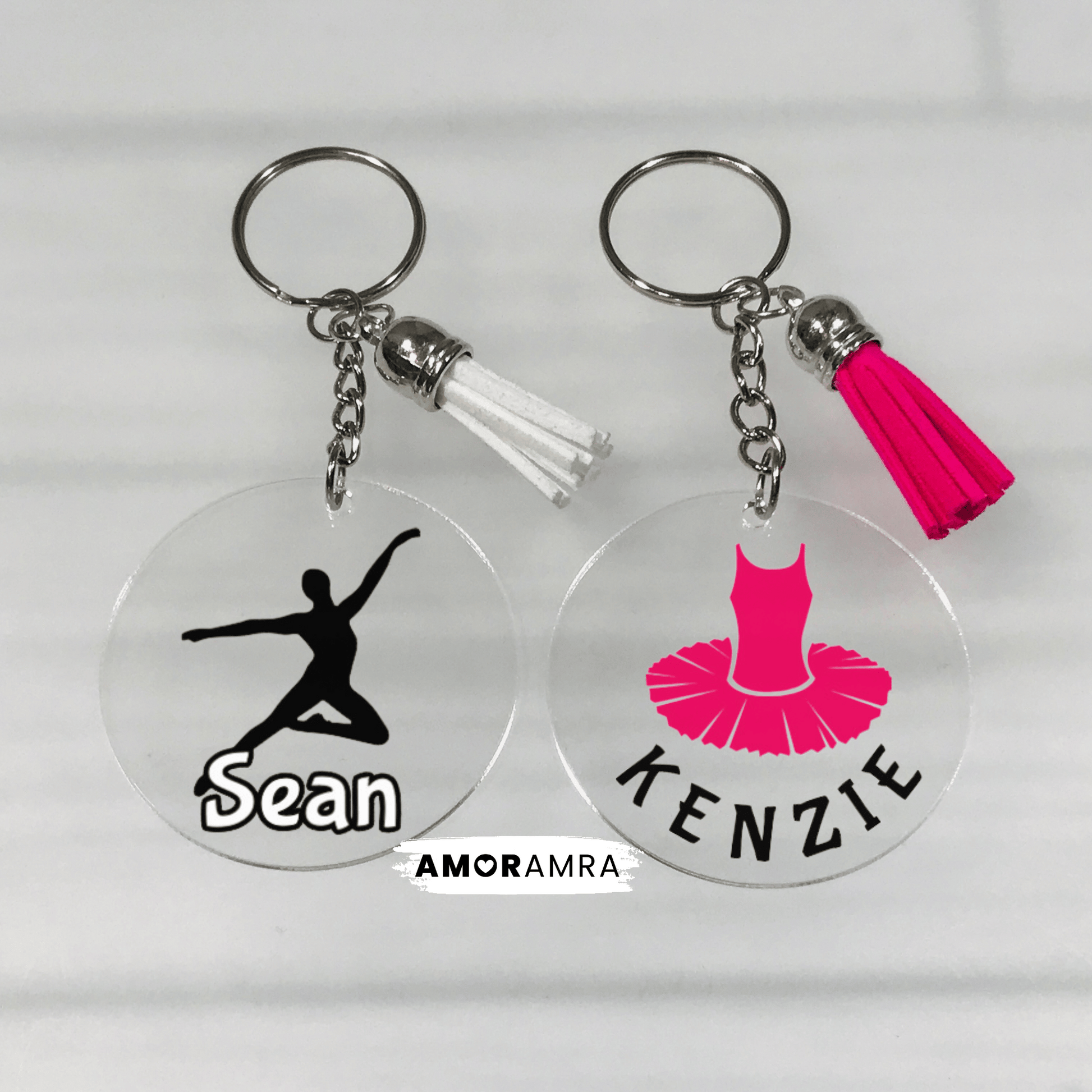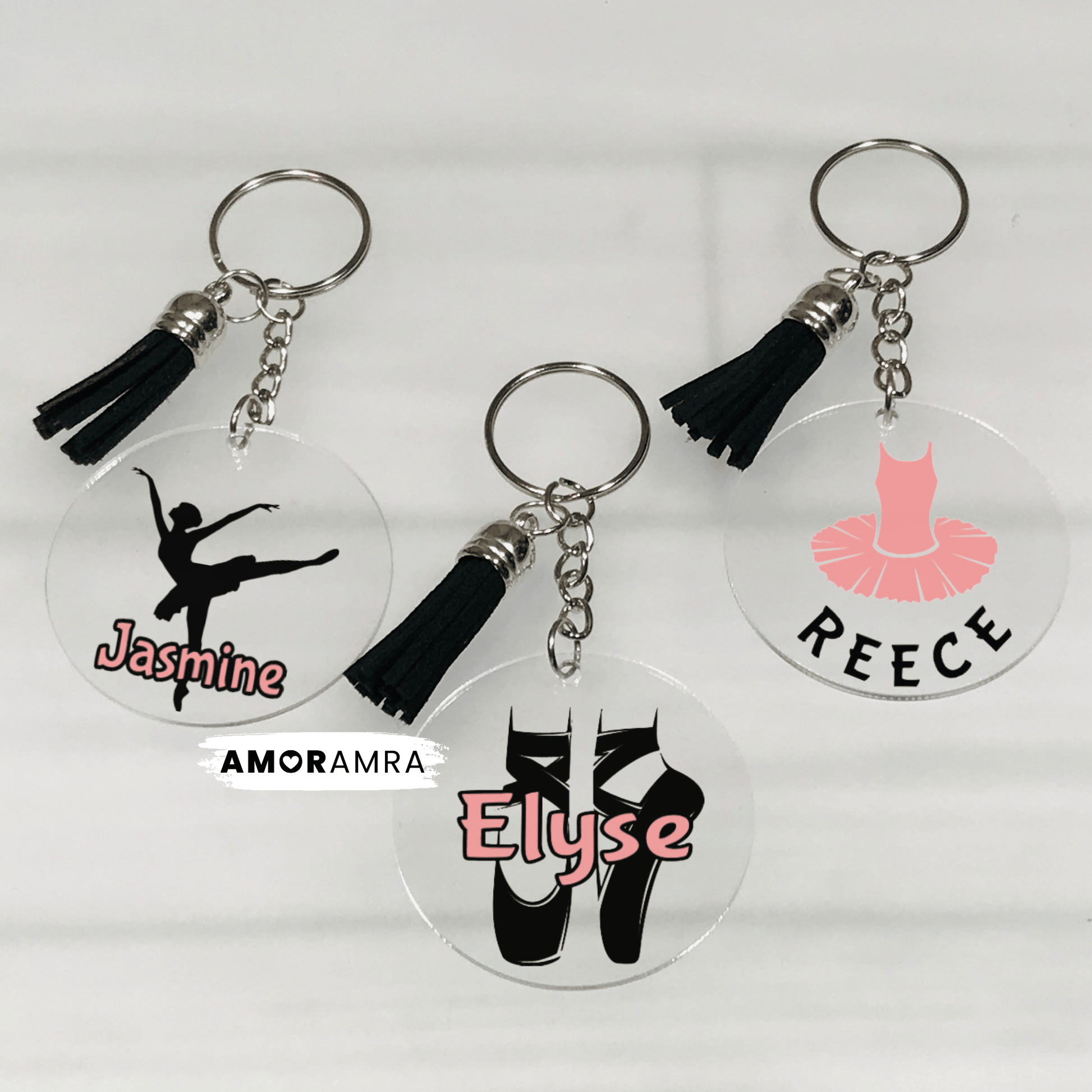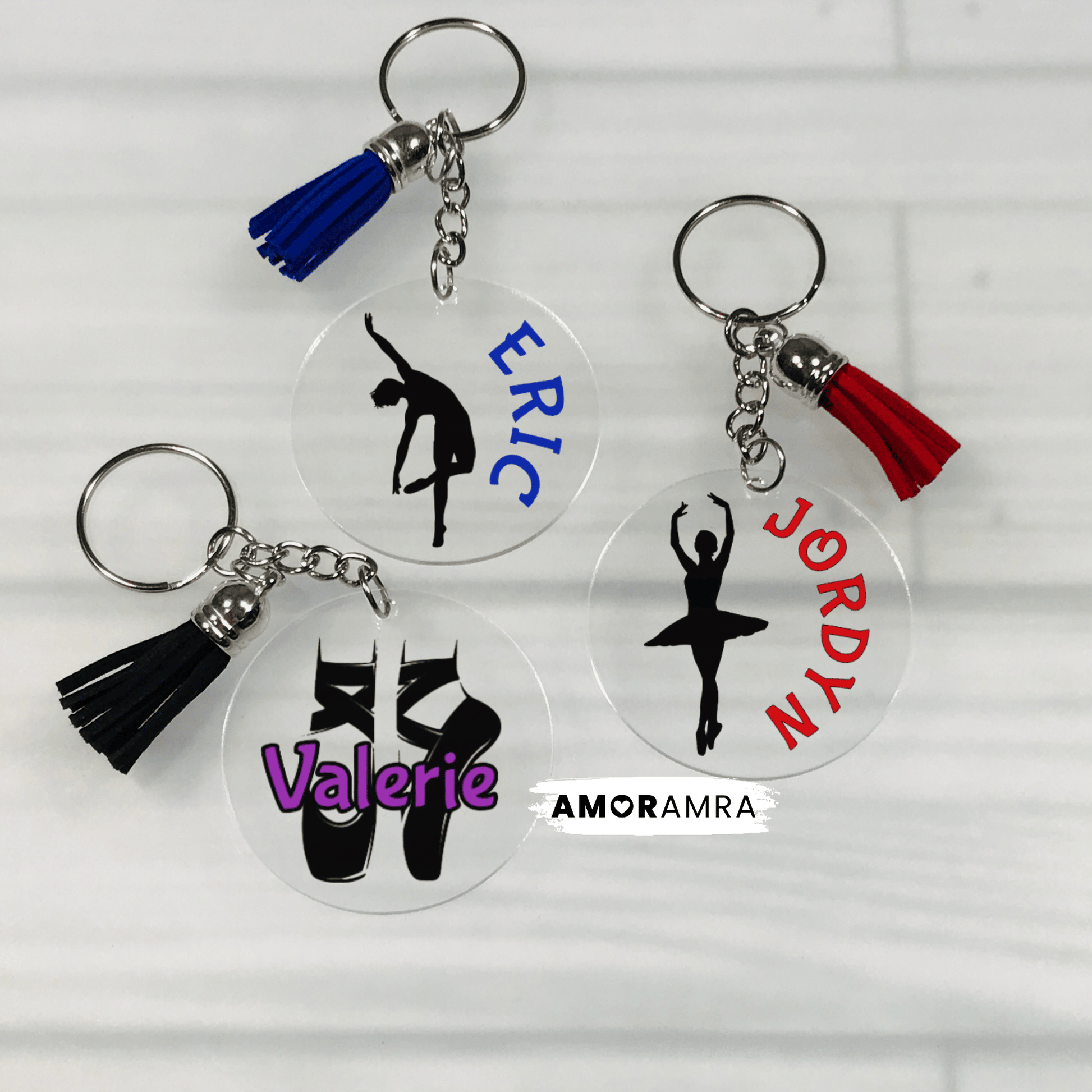 A handmade personalized dance ballet keychain just for you. Perfect for dance gift bags, dance moms, ballet teams, backpacks, bag tags etc.
