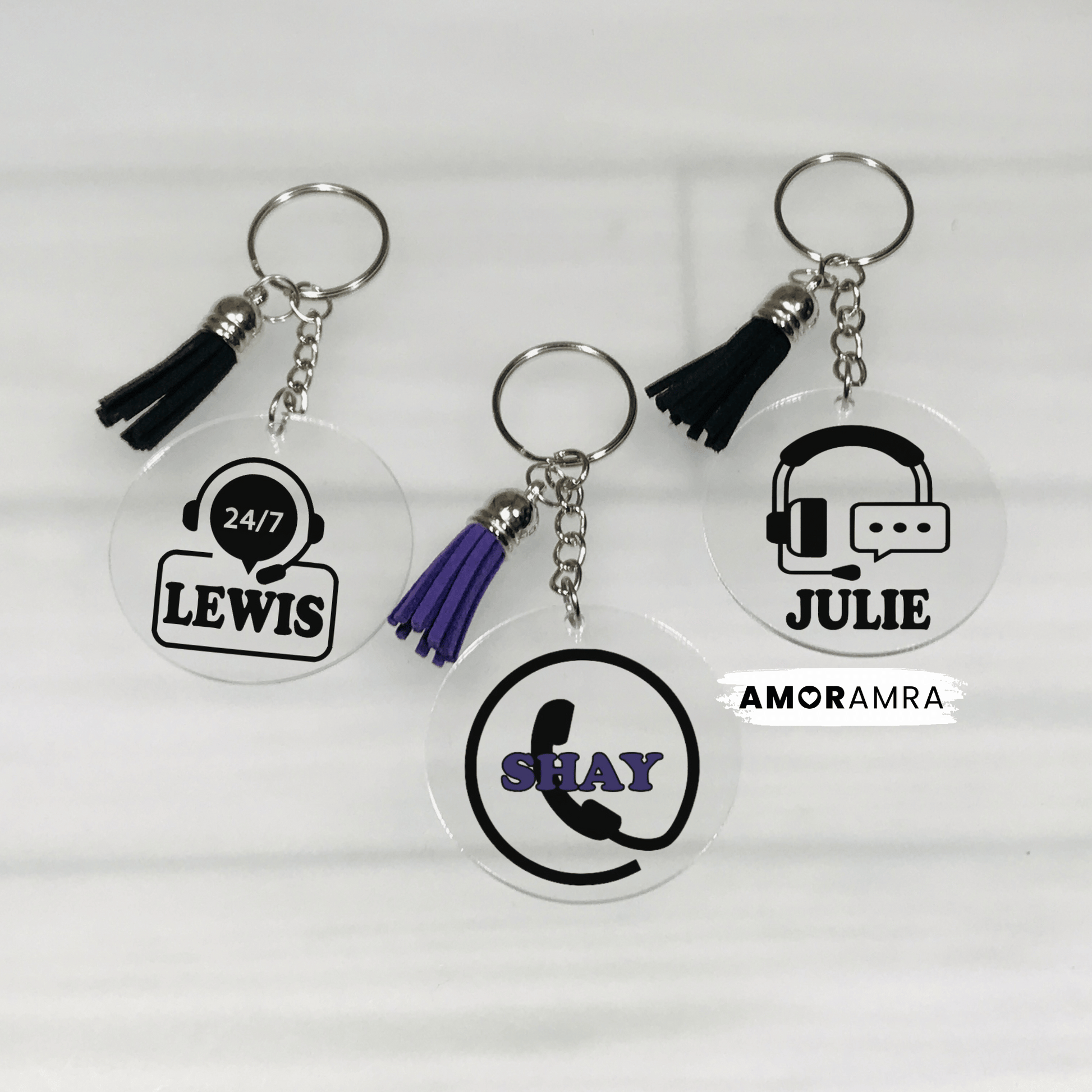 A handmade customer service rep acrylic keychain. These are perfect for gift-giving, show your appreciation to your favorite CSR.