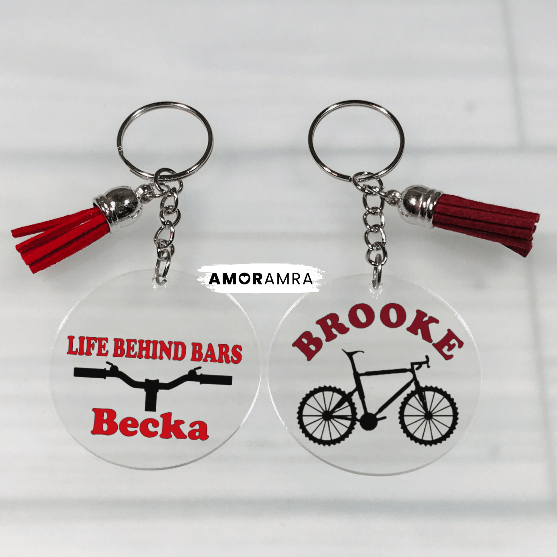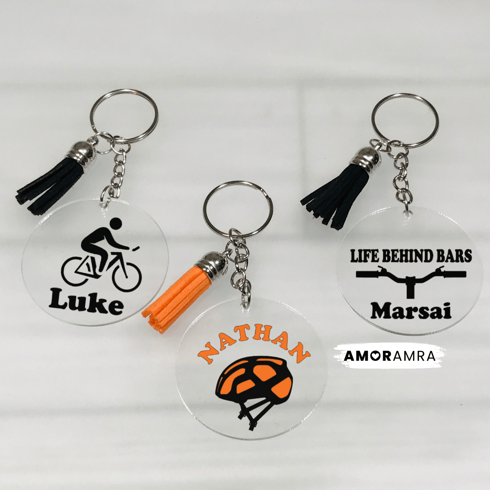 A handmade personalized cyclist keychain just for you.