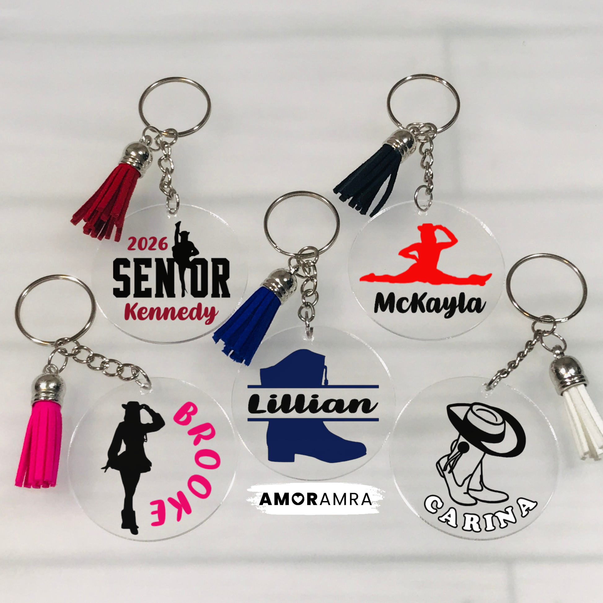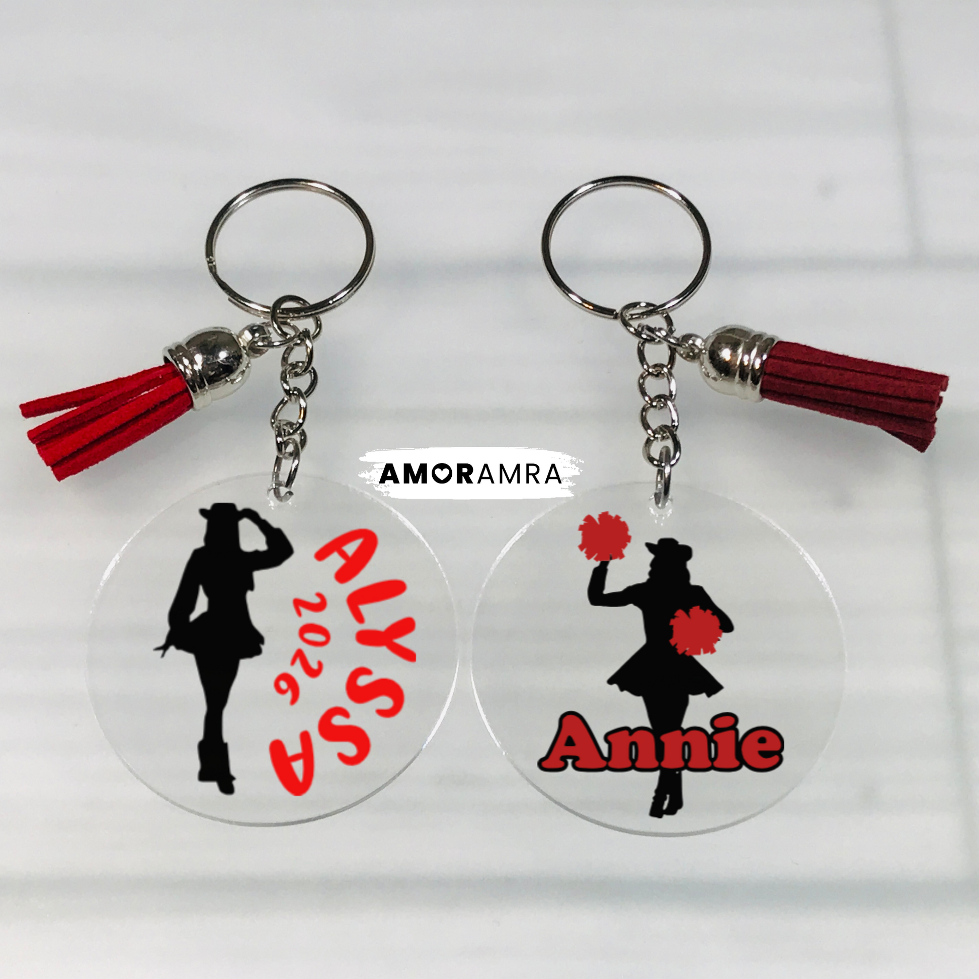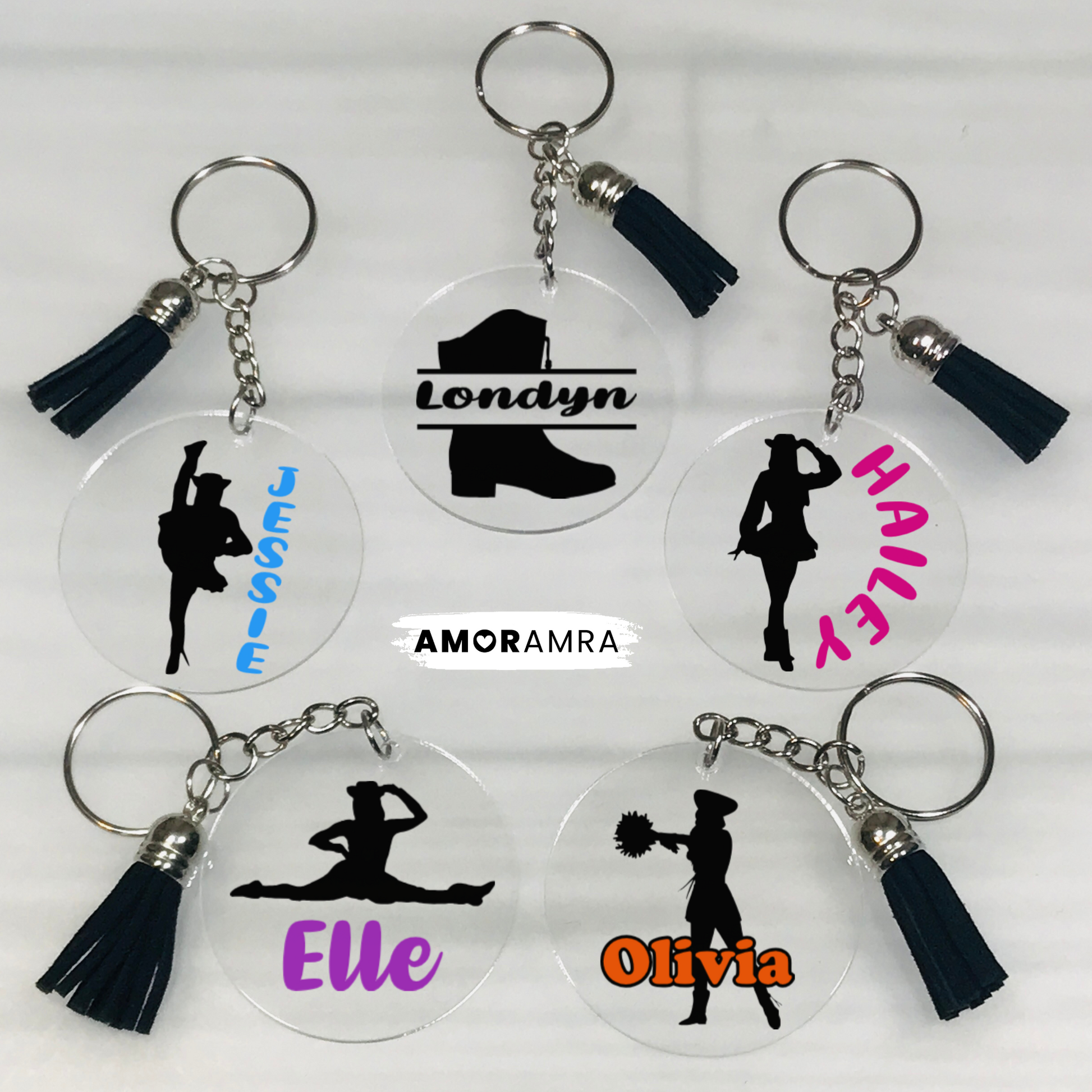 A handmade personalized Drill team keychain just for you. Perfect for gift bags, dance moms, dance teams, backpacks, etc.