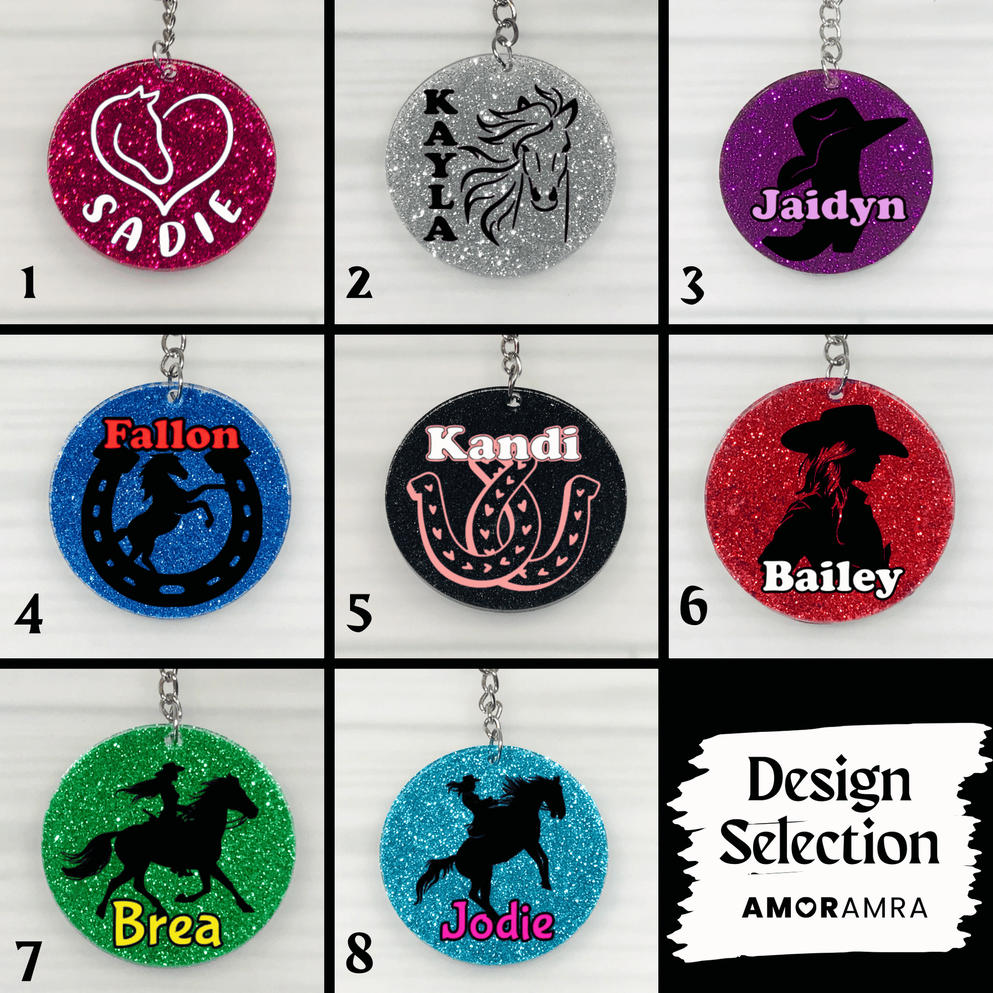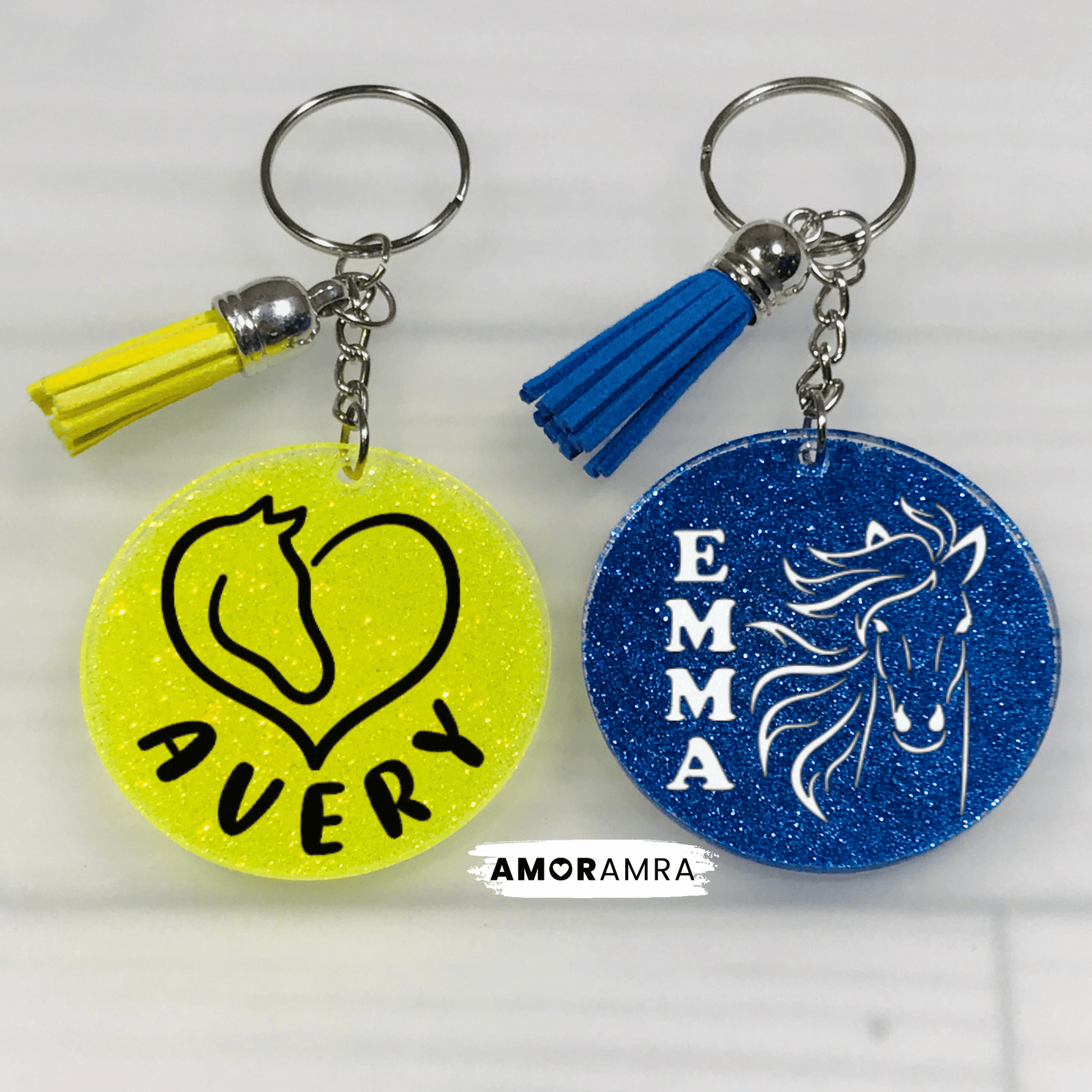 A handmade personalized acrylic horse keychain just for you. Perfect gift for all horse lovers and horse moms. Horse Key Accessory!