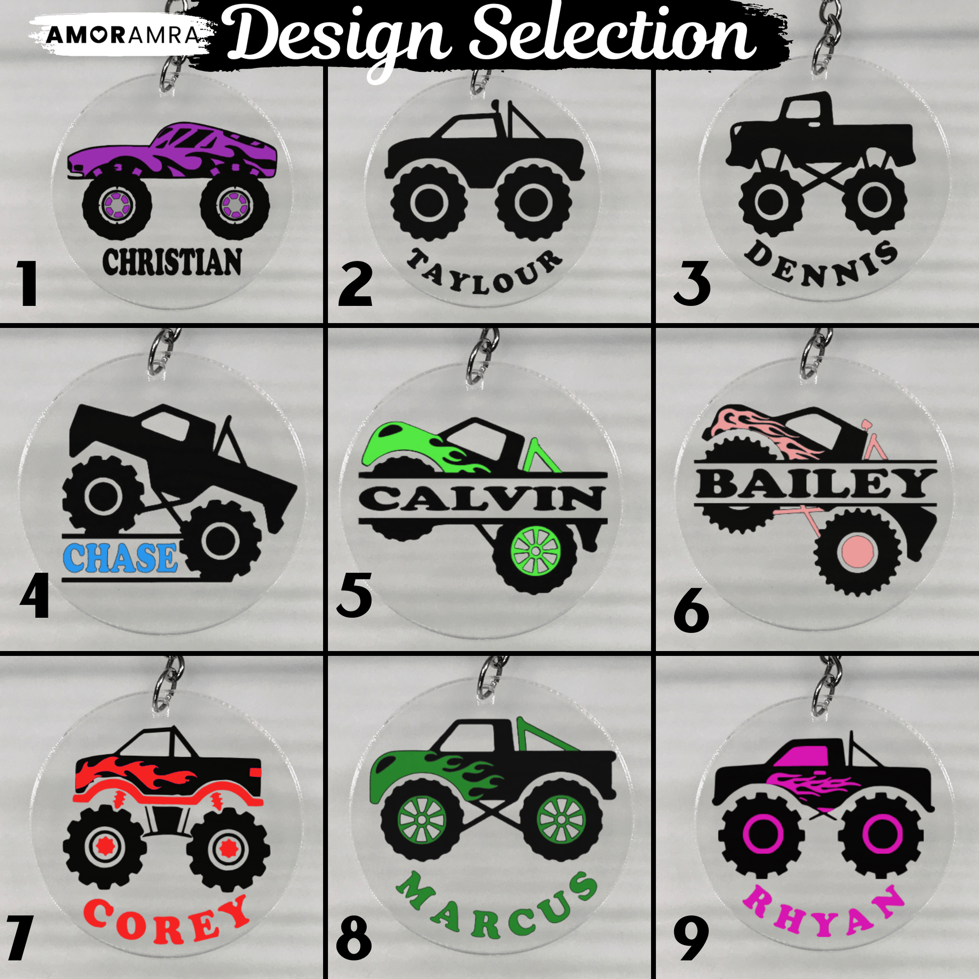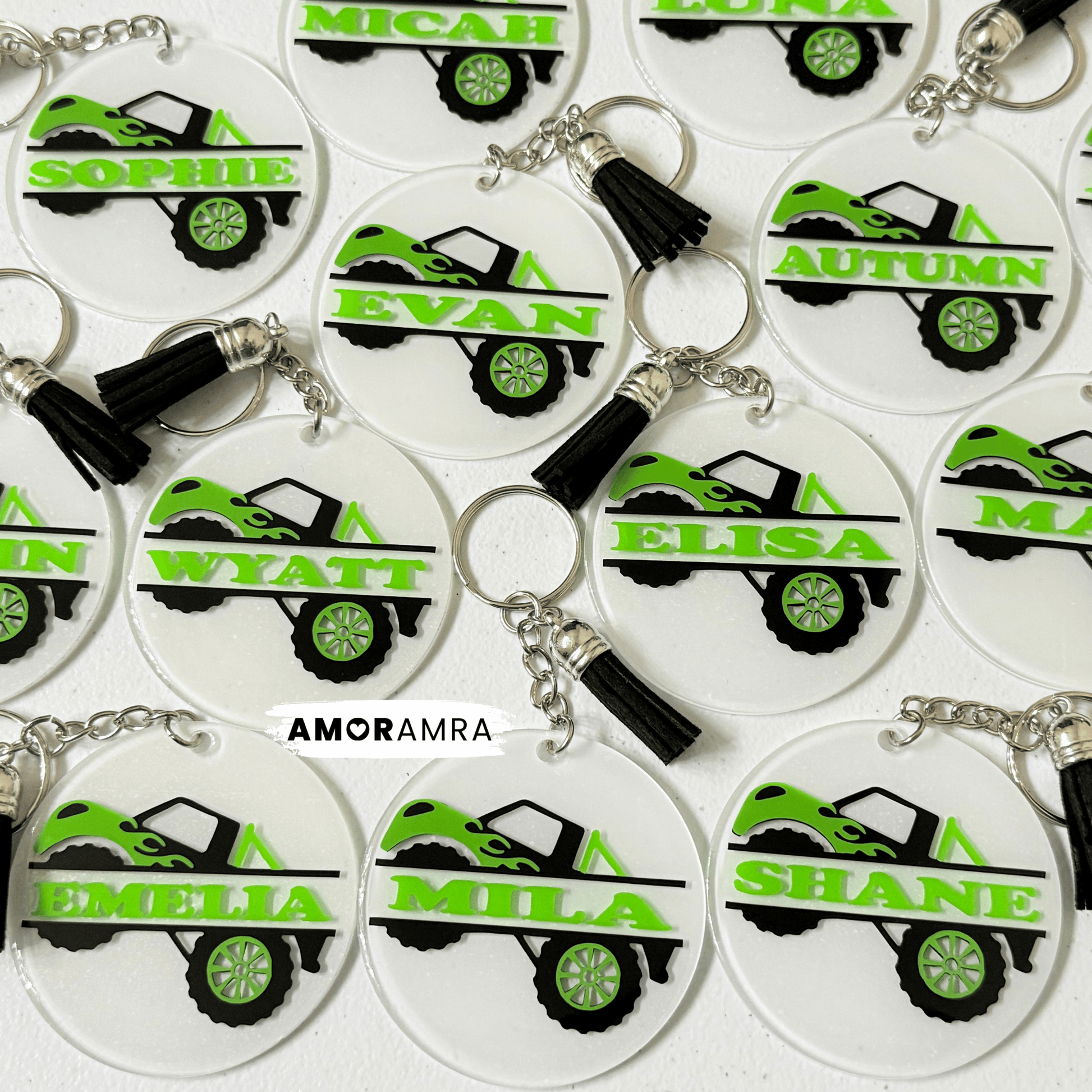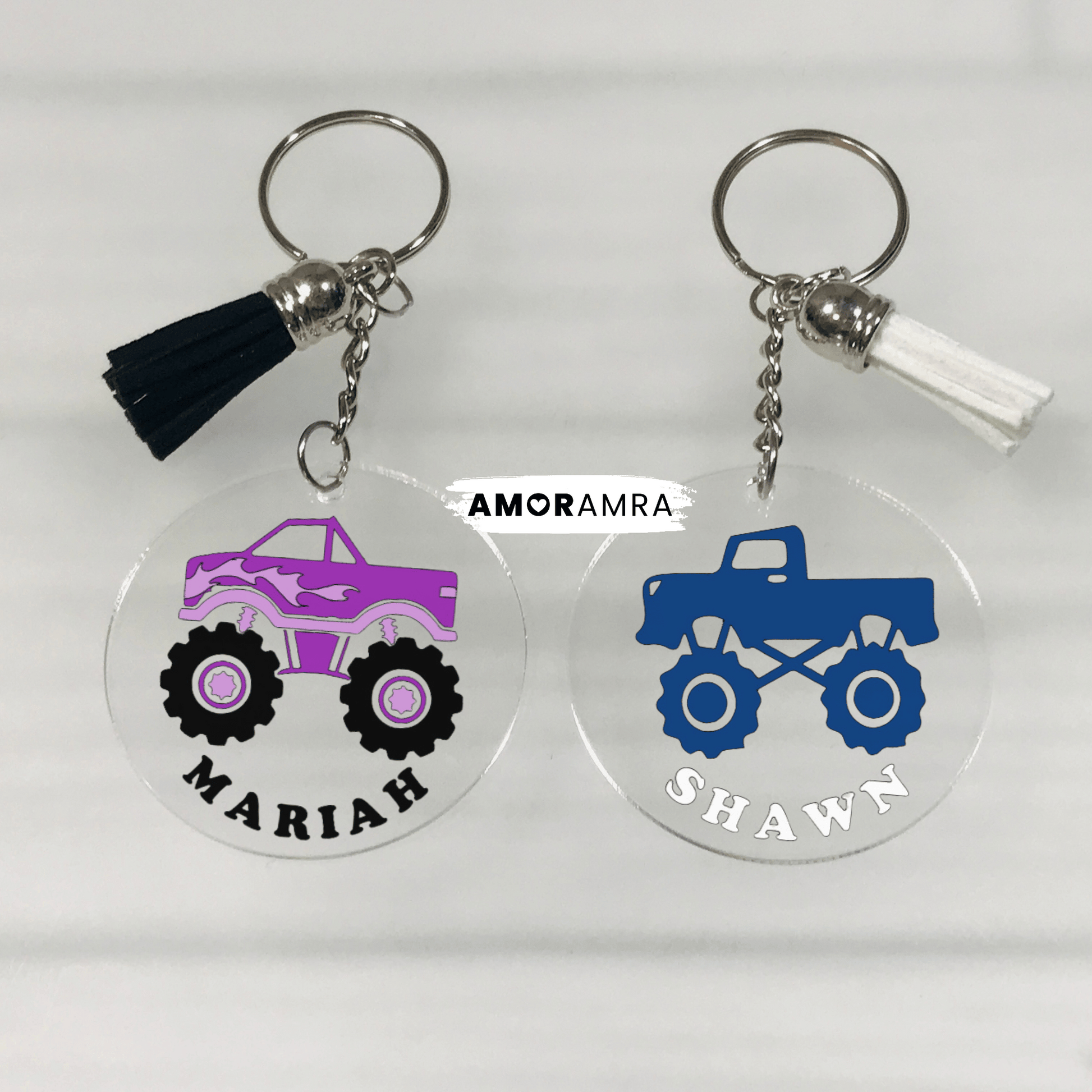 A handmade personalized monster truck keychain just for you. These are perfect for accessorizing & gift-giving: birthday gift, Christmas gift, just because gift, personal gift, or party favors.