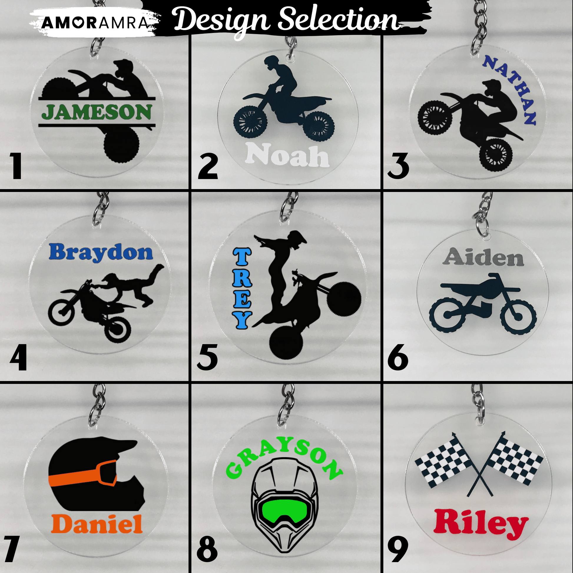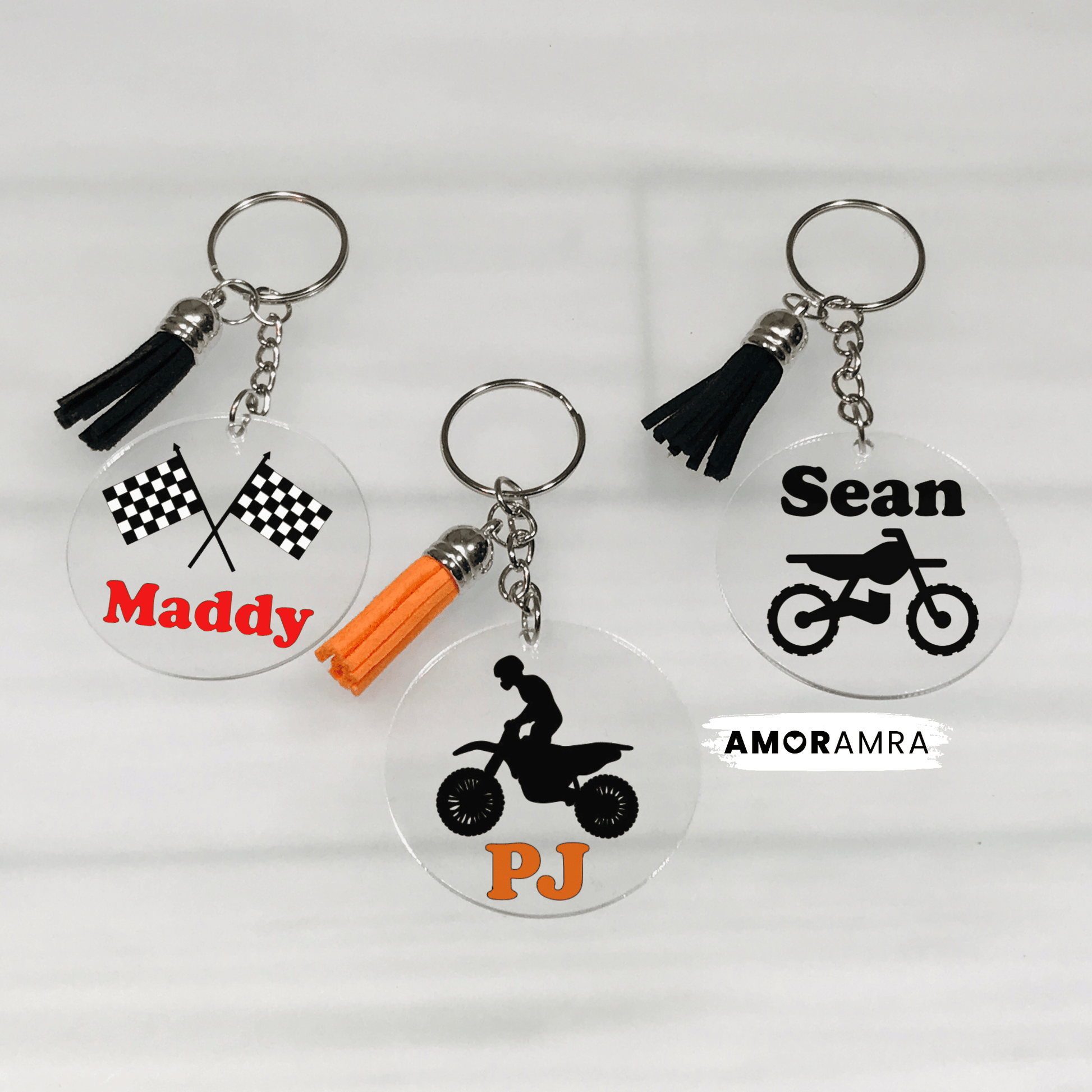 A handmade personalized acrylic motocross keychain just for you. Perfect gift for all bike lovers and bike riders. Dirt bike Key Accessory!