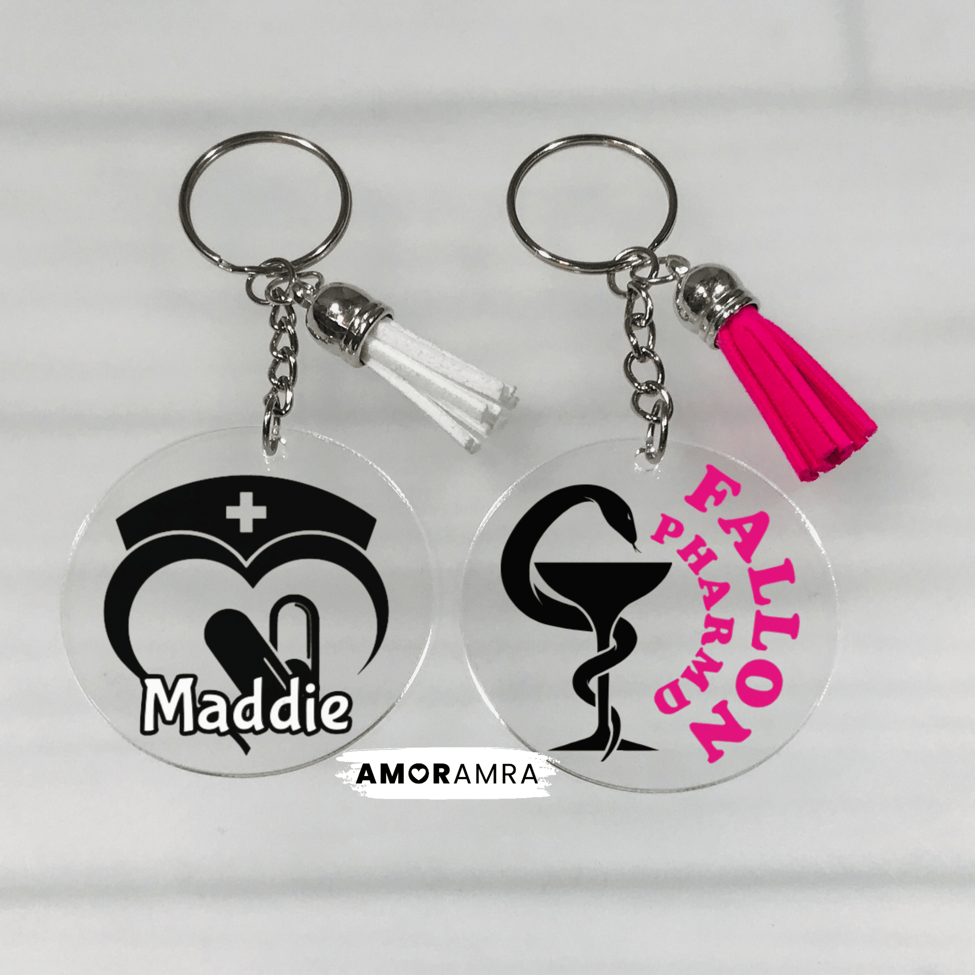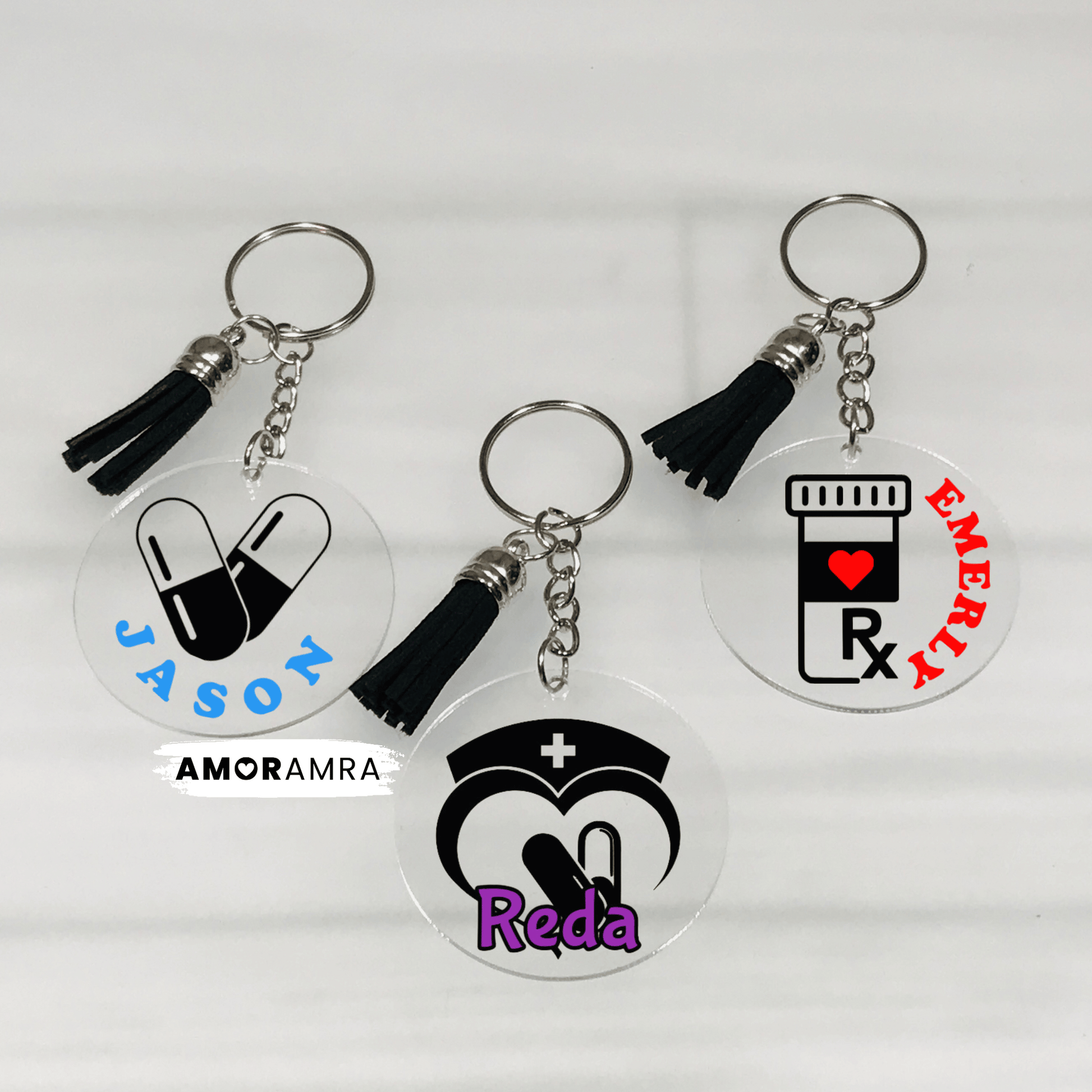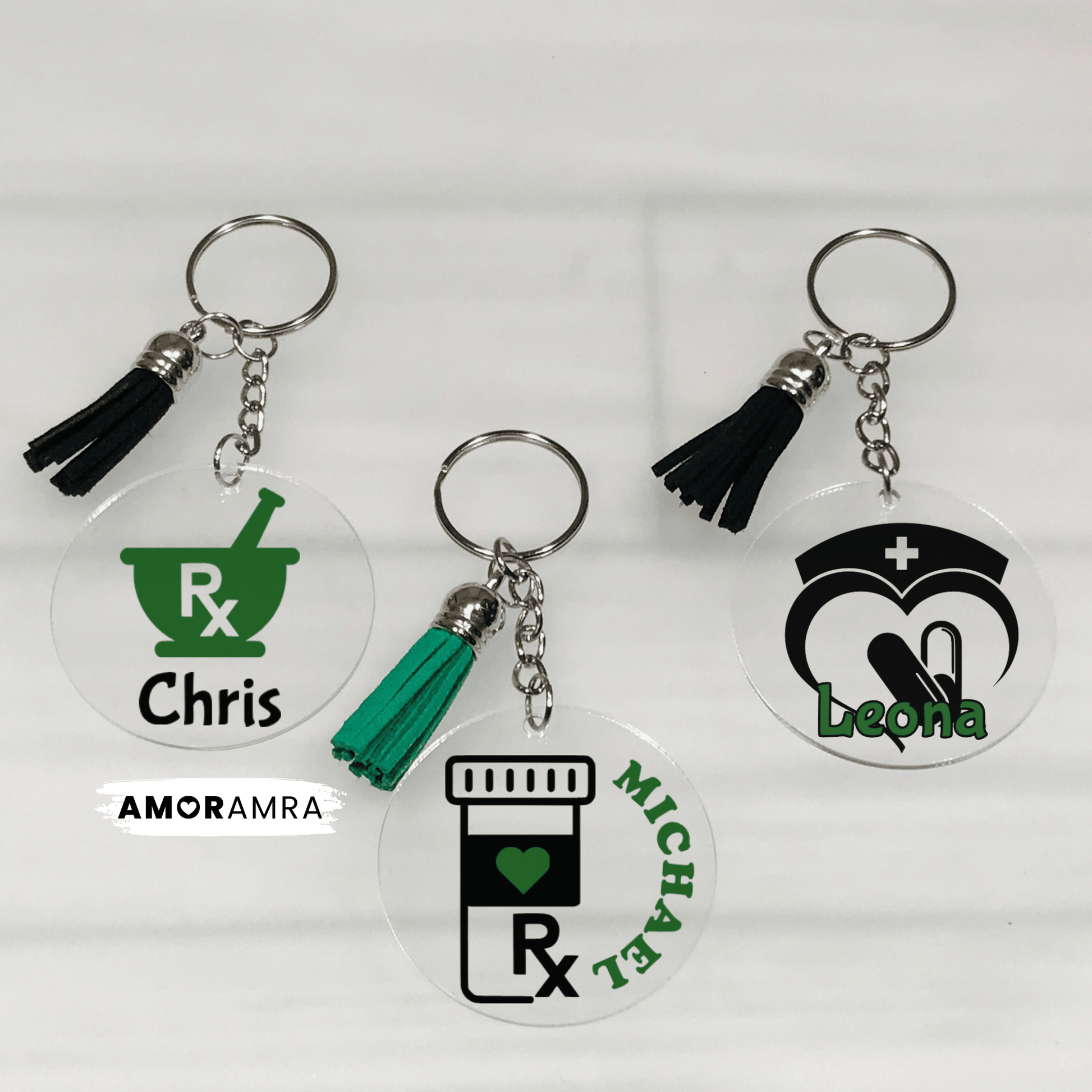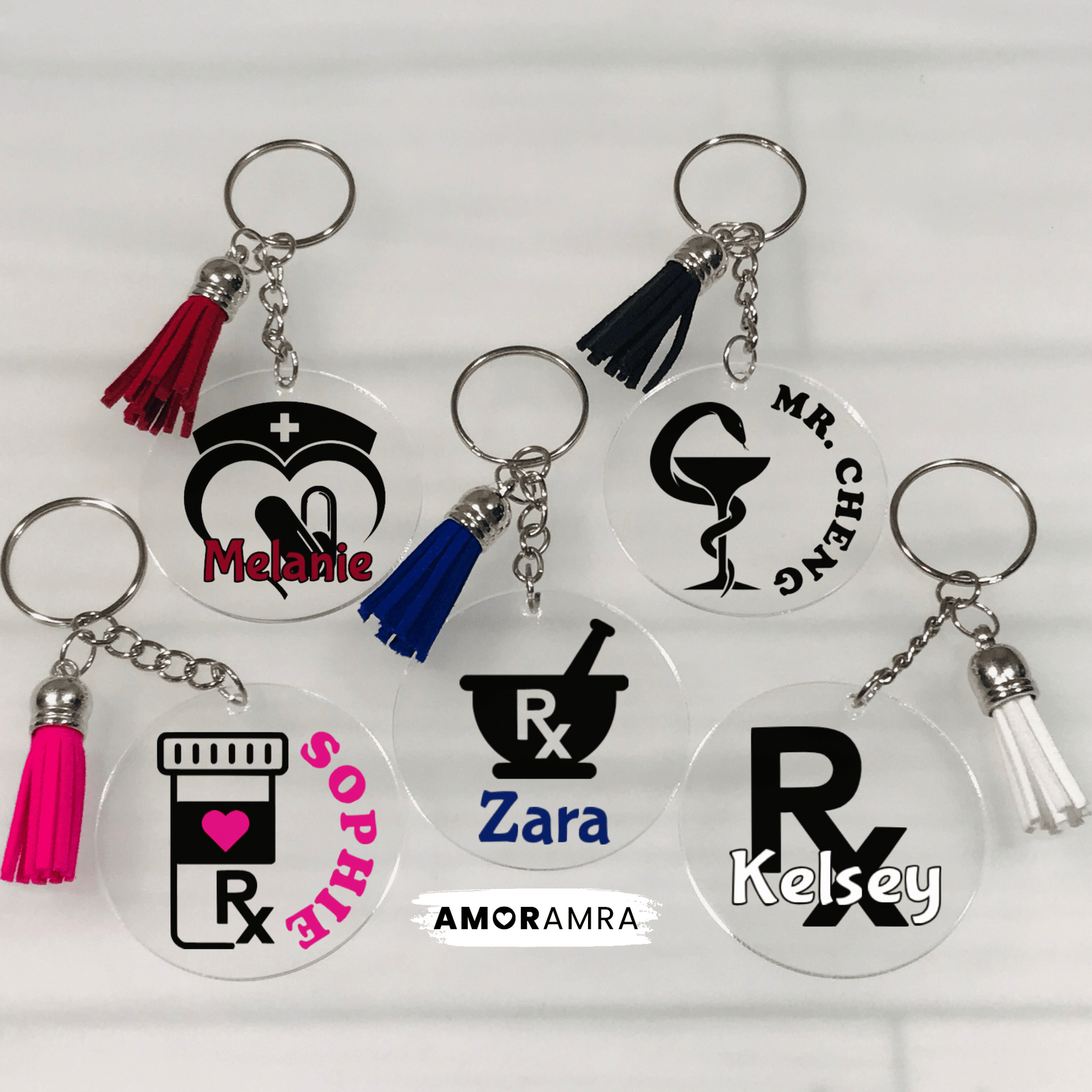 A handmade personalized Pharmacist keychain just for you. Perfect for gift bags, med grads, co-workers etc.