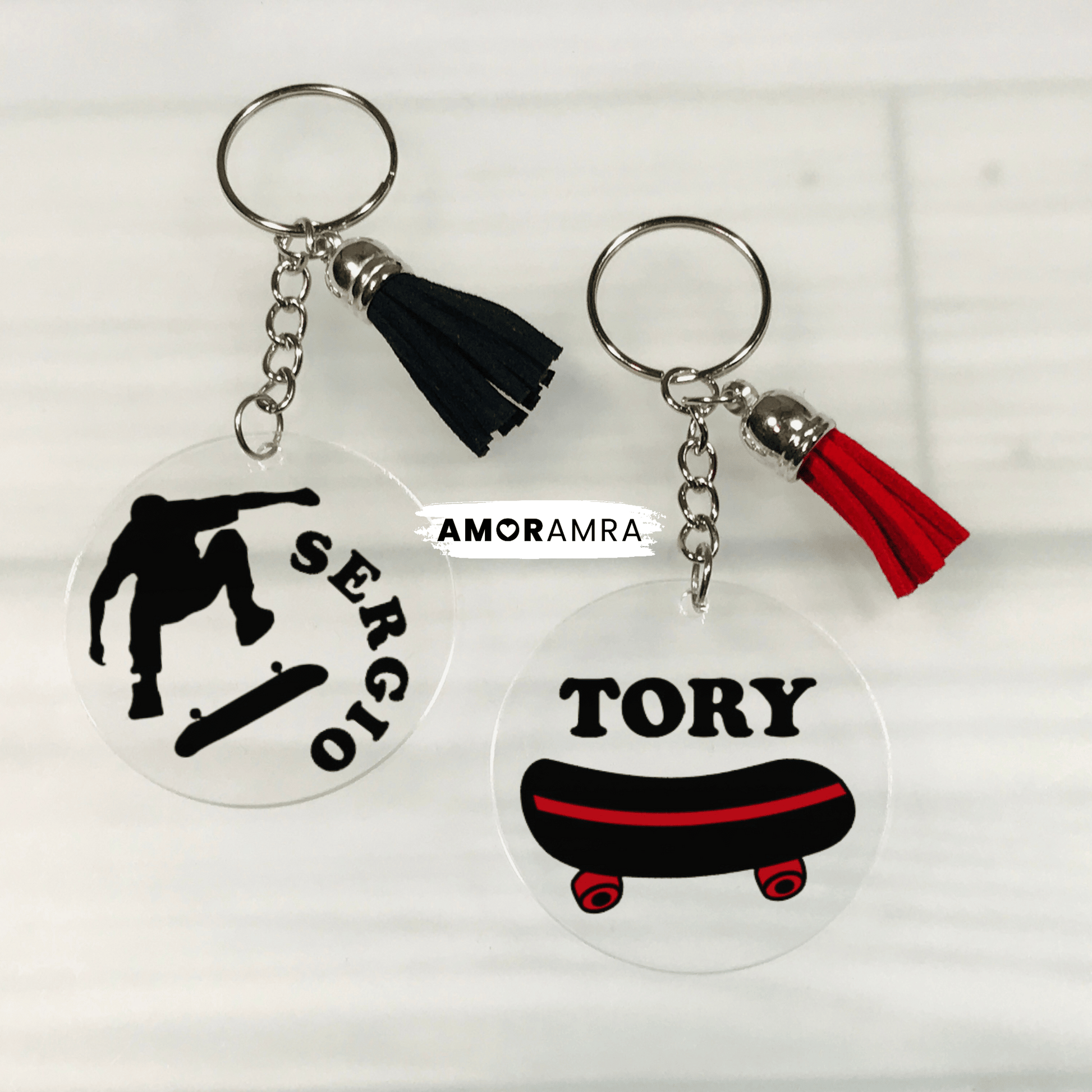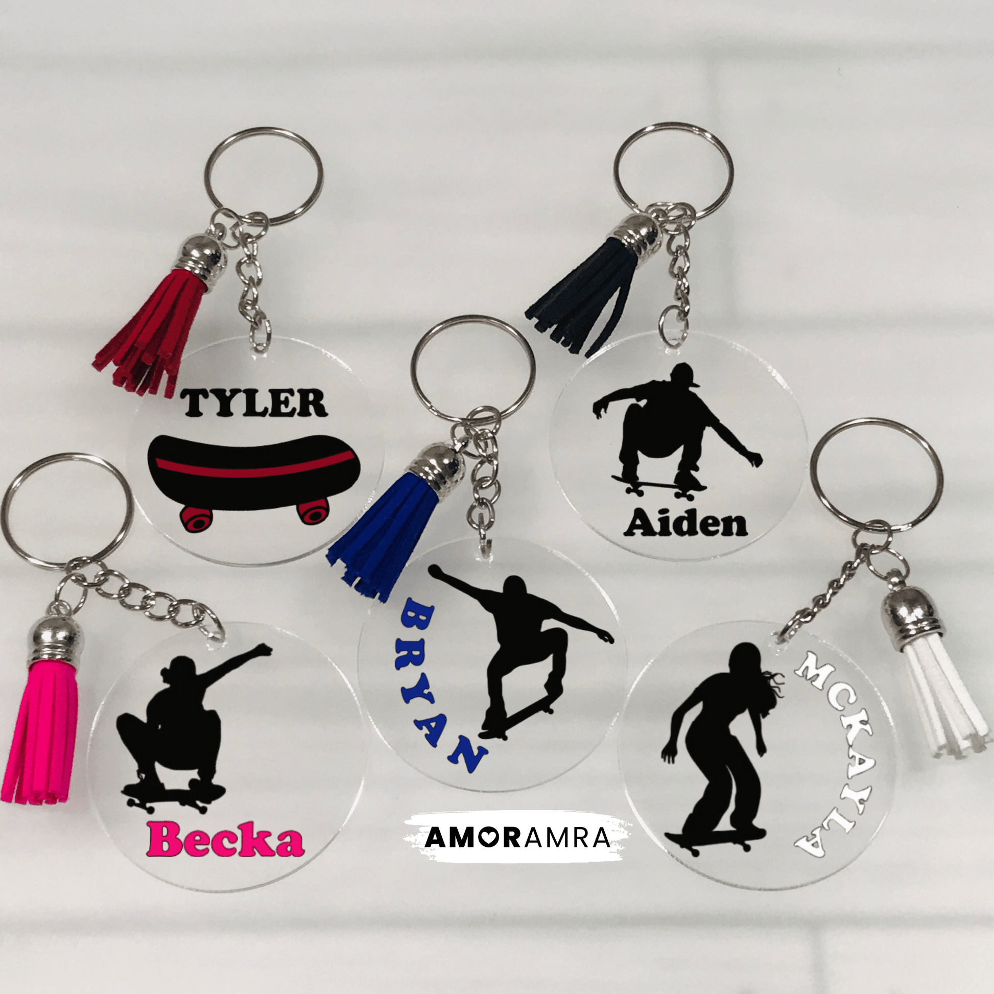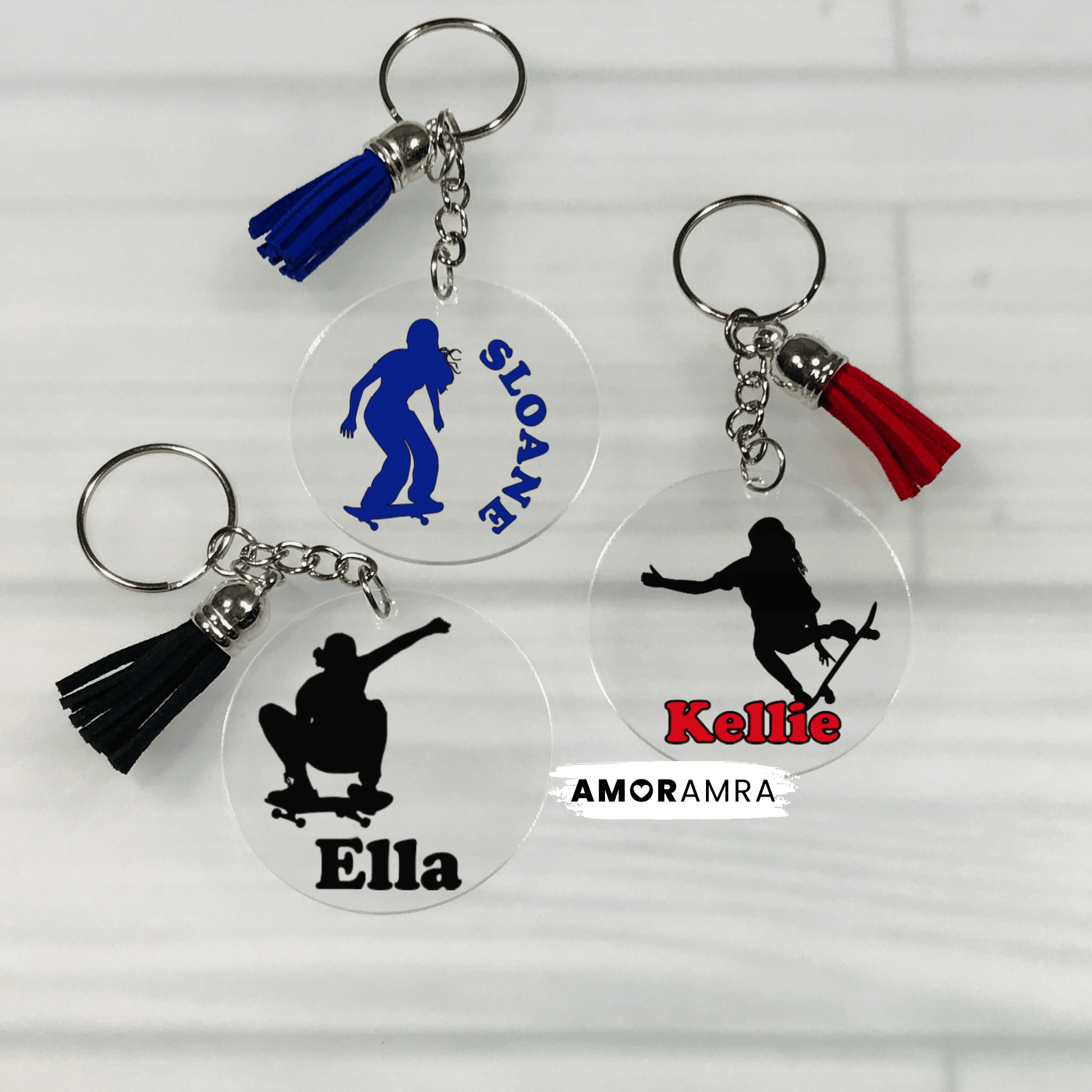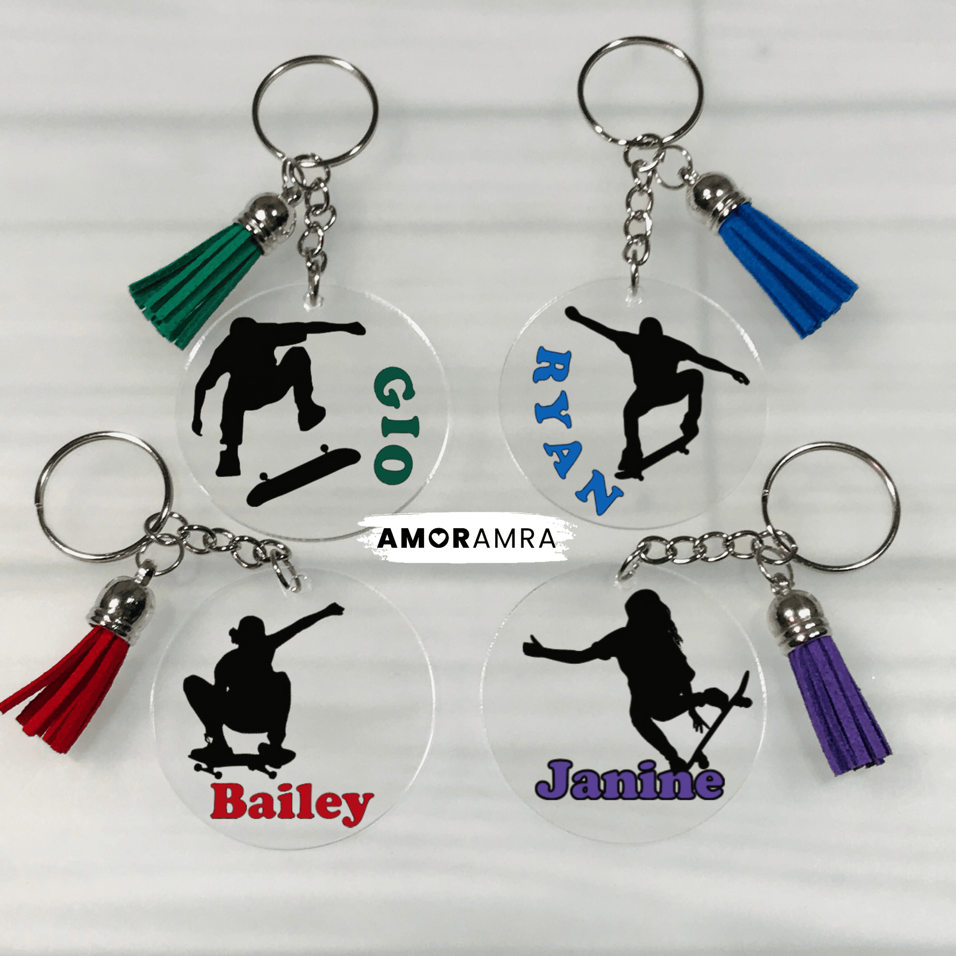 A handmade personalized skateboarder keychain just for you. Perfect for skaters, teammates, coaches, etc..
