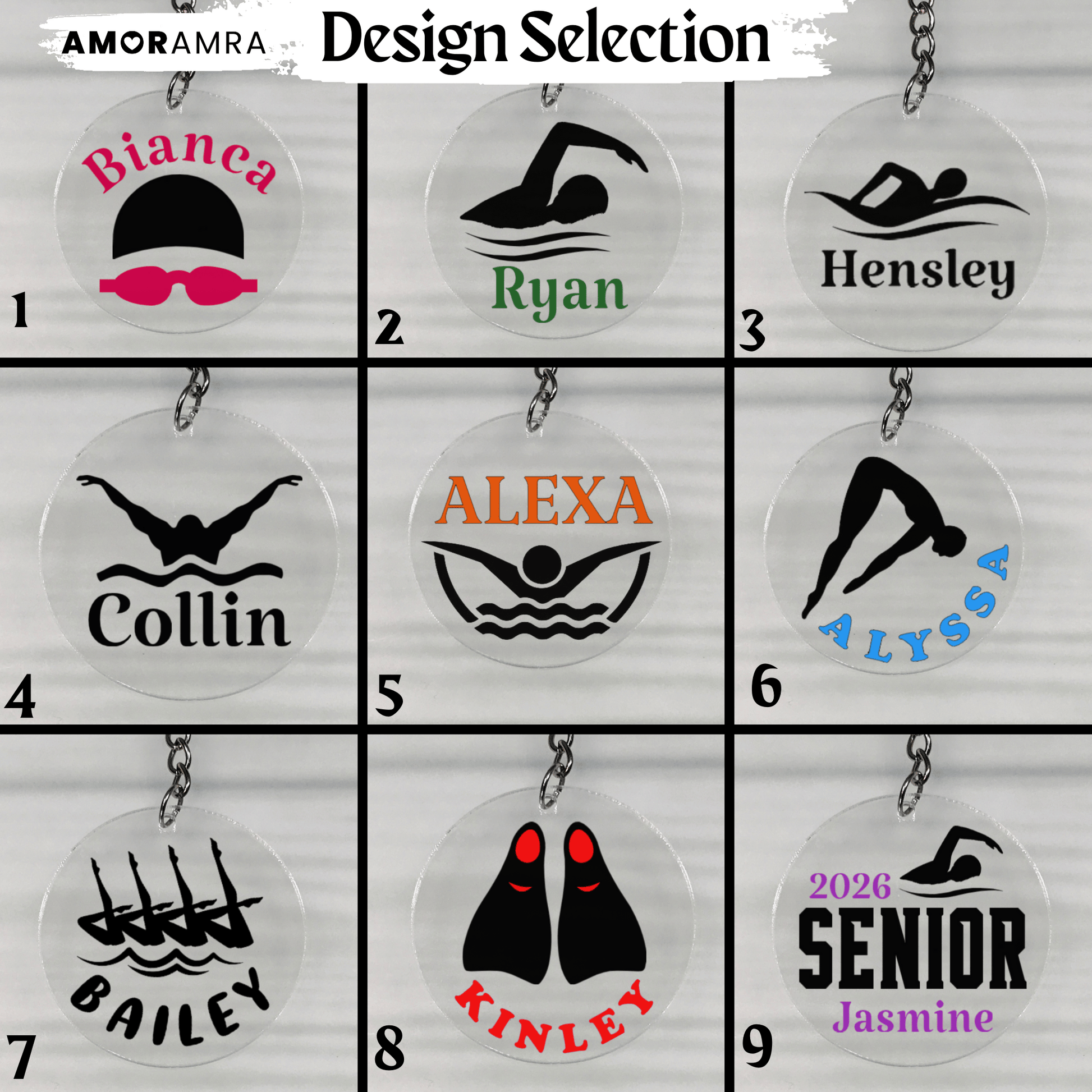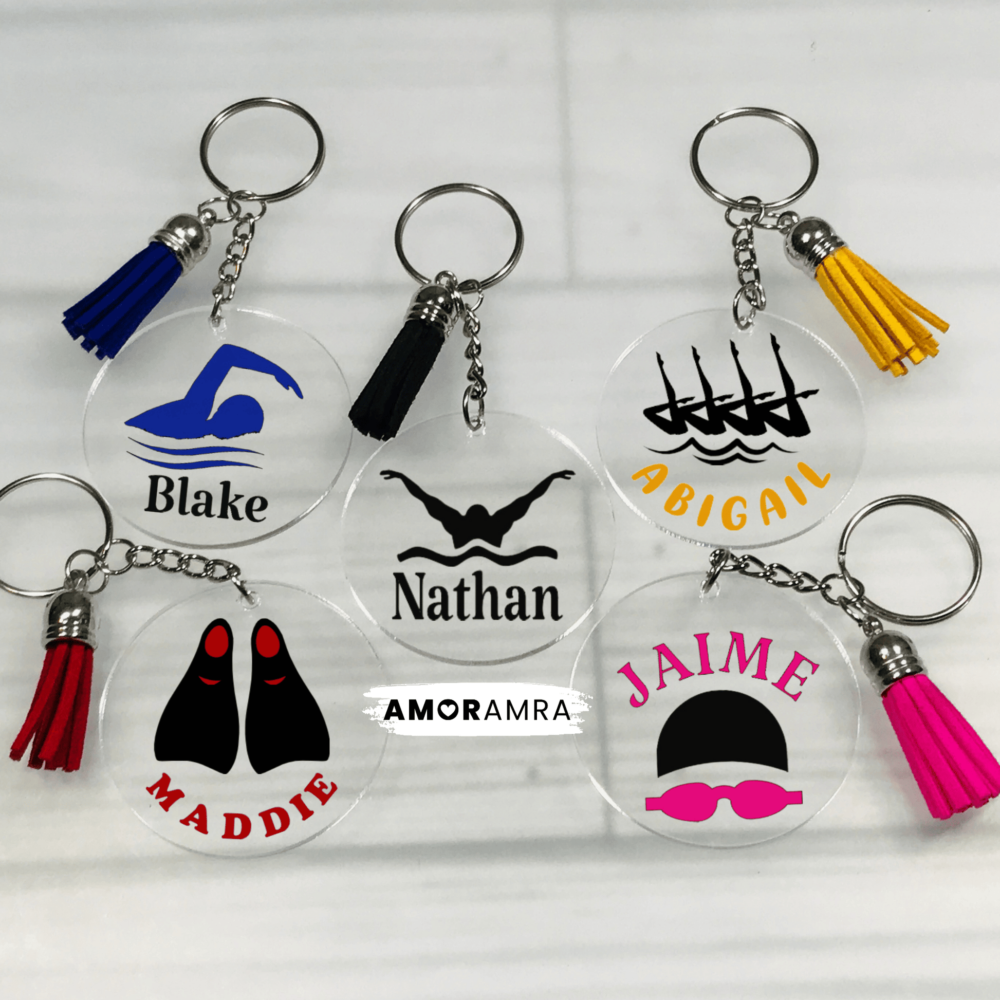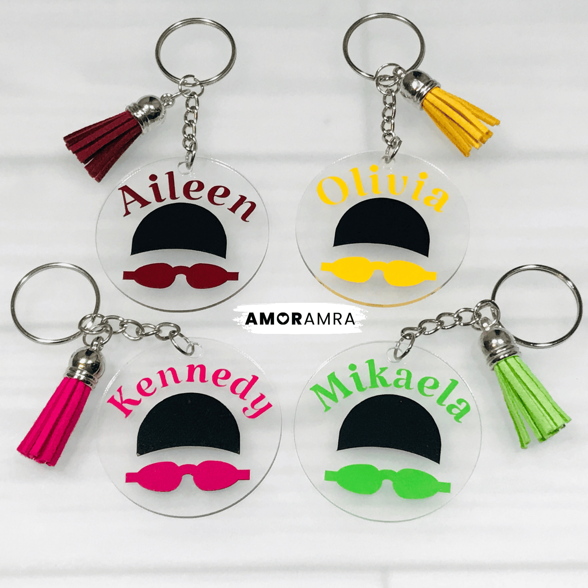A personalized swimmer keychain just for you. Perfect for swim bags, swim teams etc.