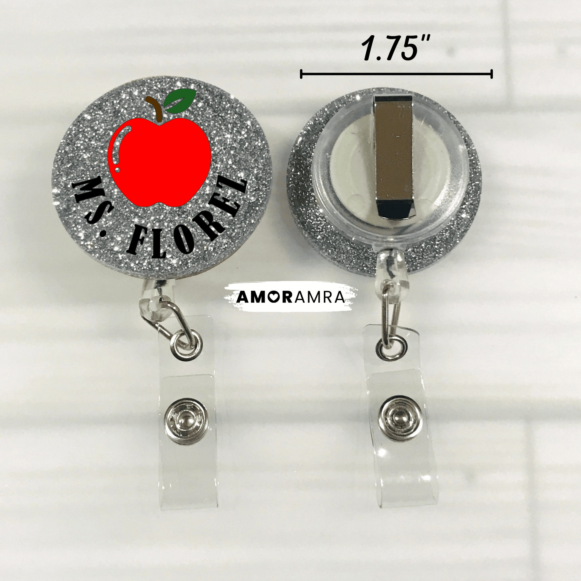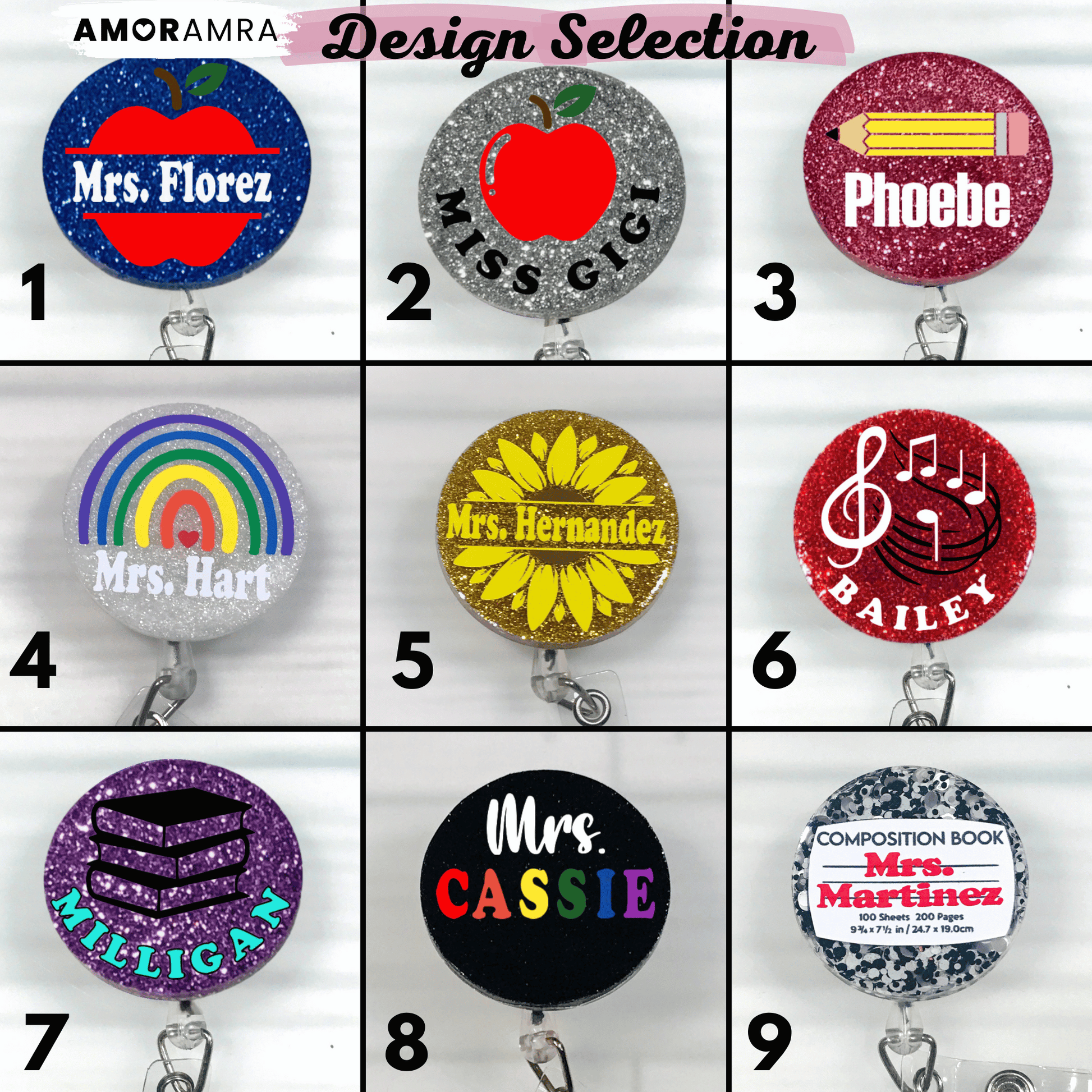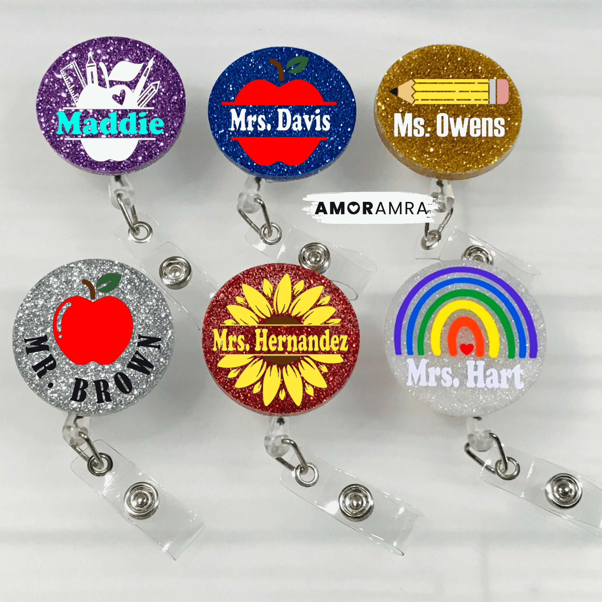 This personalized teacher badge holder reel will make a perfect gift for any teacher, principal, coach, student aid, school nurse, school assistant, or anyone who wears an ID tag badge for work or school.
