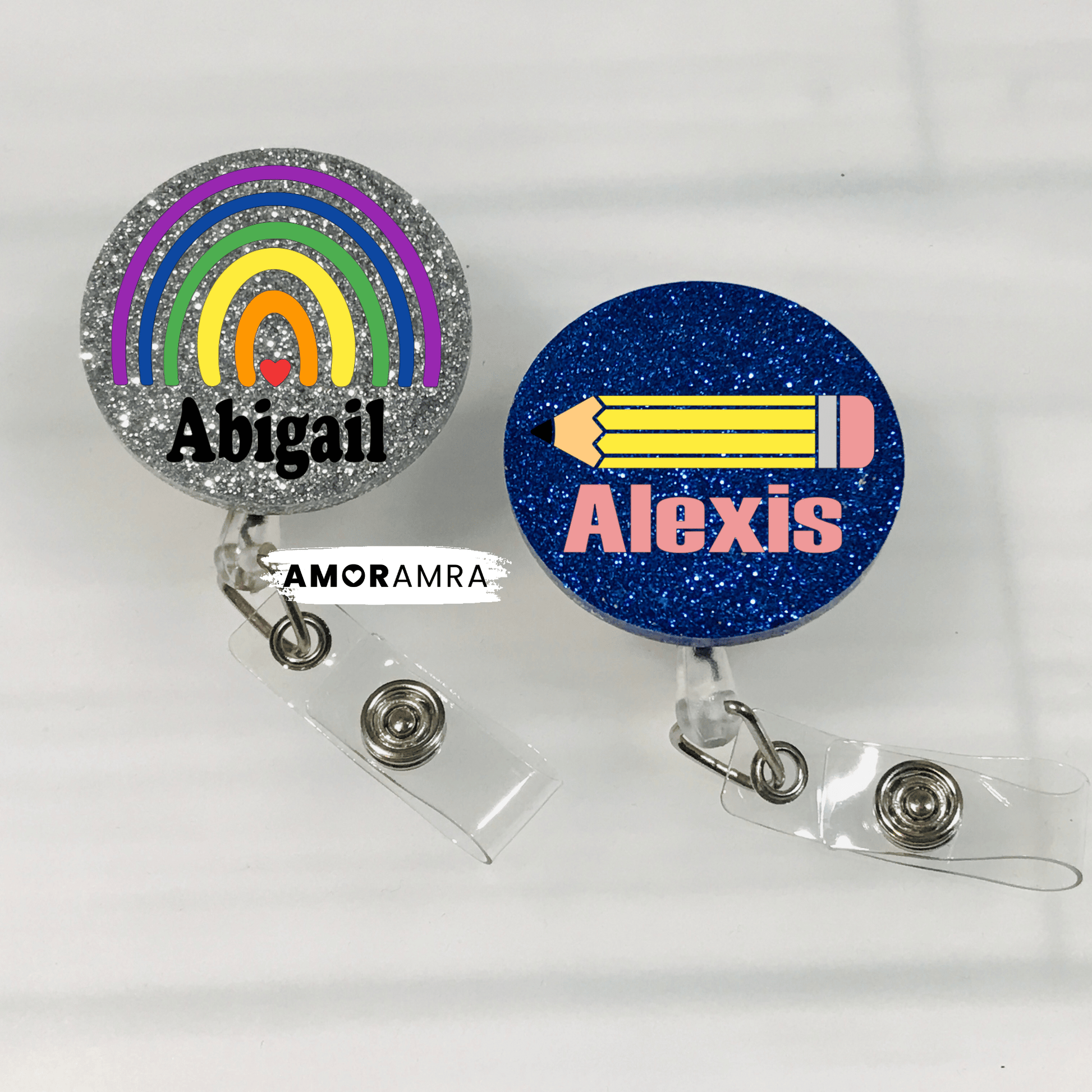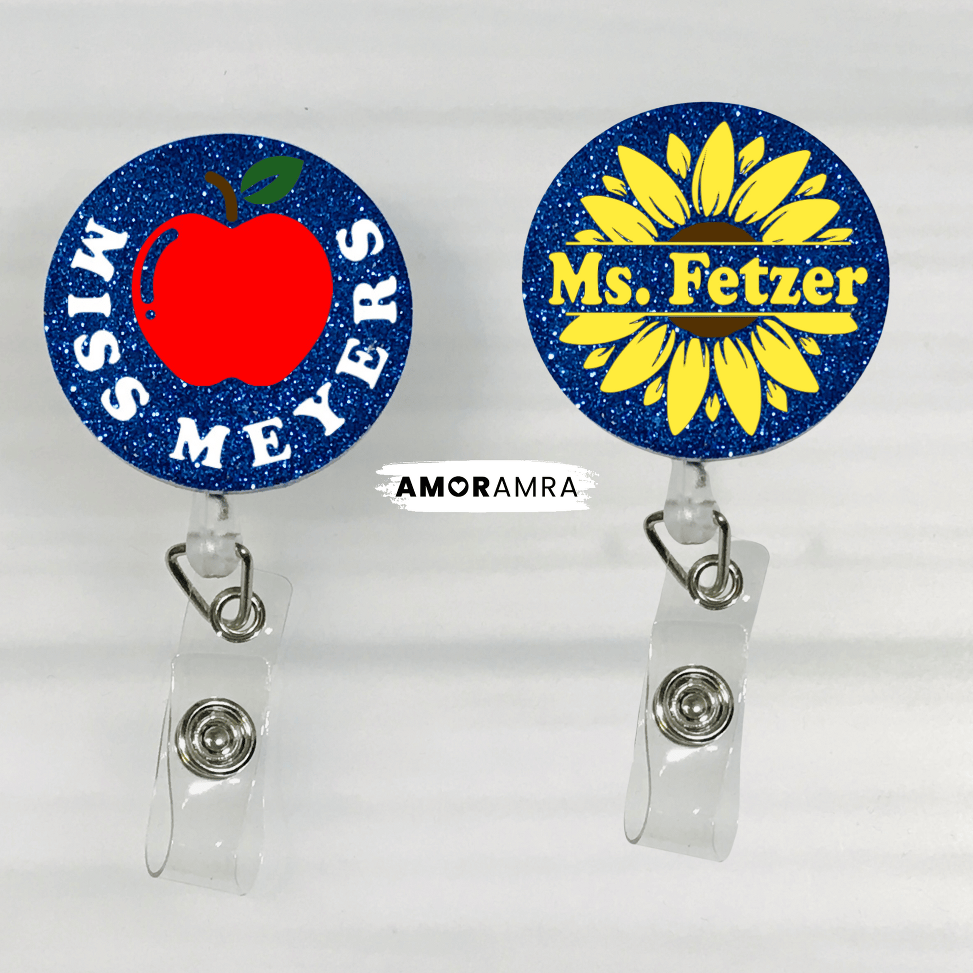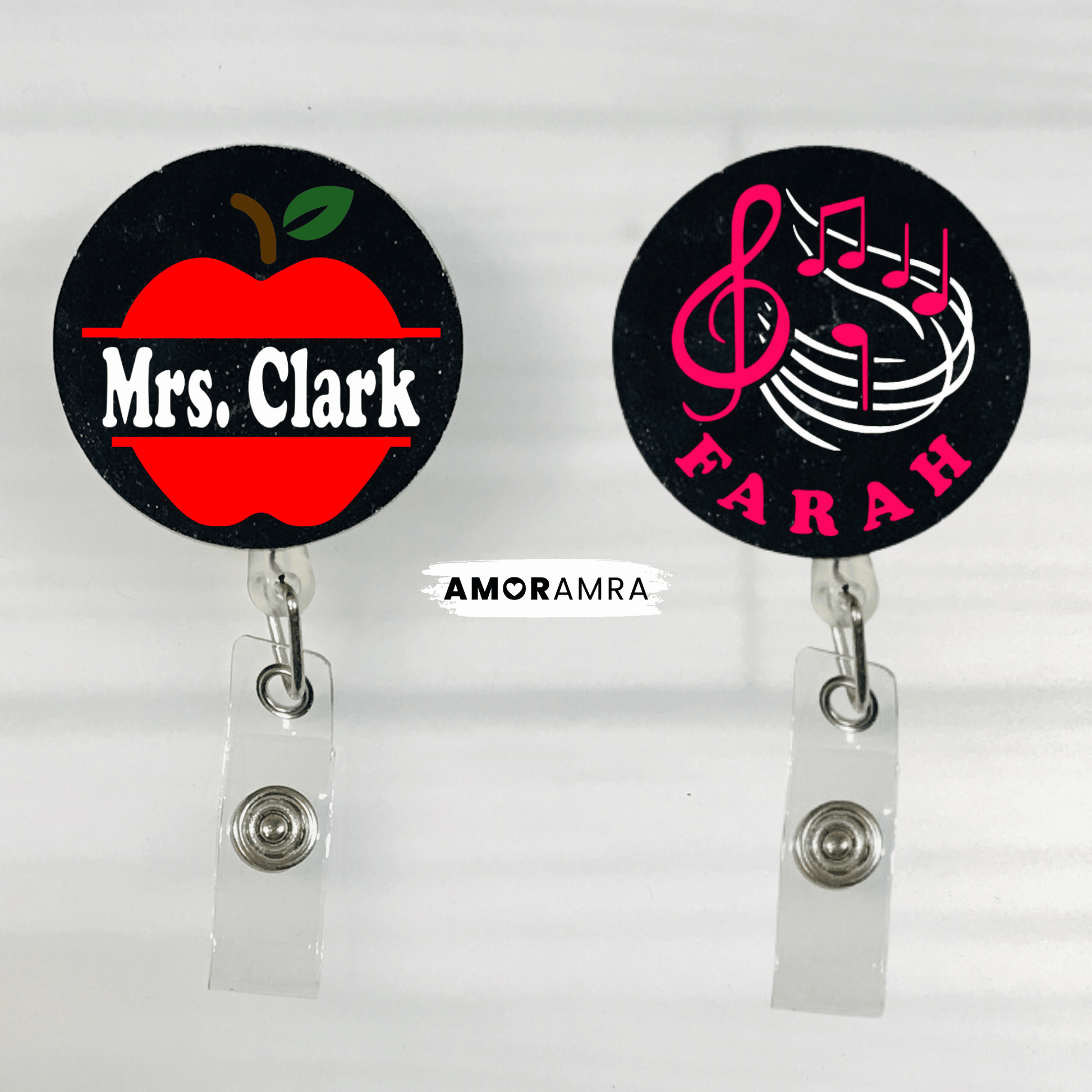 This personalized teacher badge holder reel will make a perfect gift for any teacher, principal, coach, student aid, school nurse, school assistant, or anyone who wears an ID tag badge for work or school.