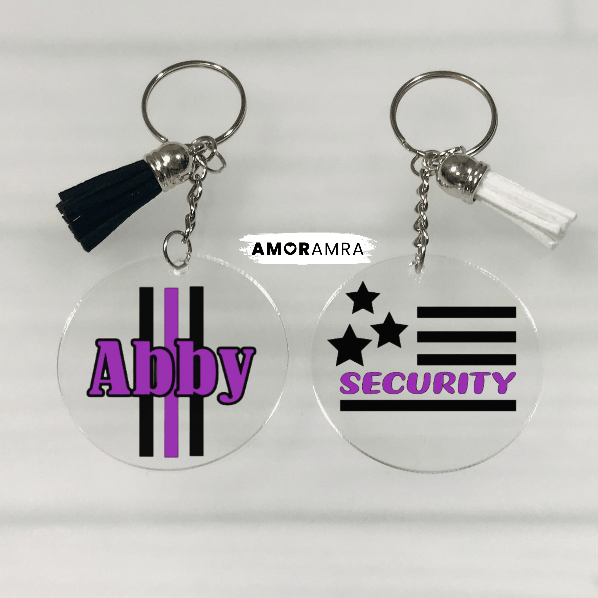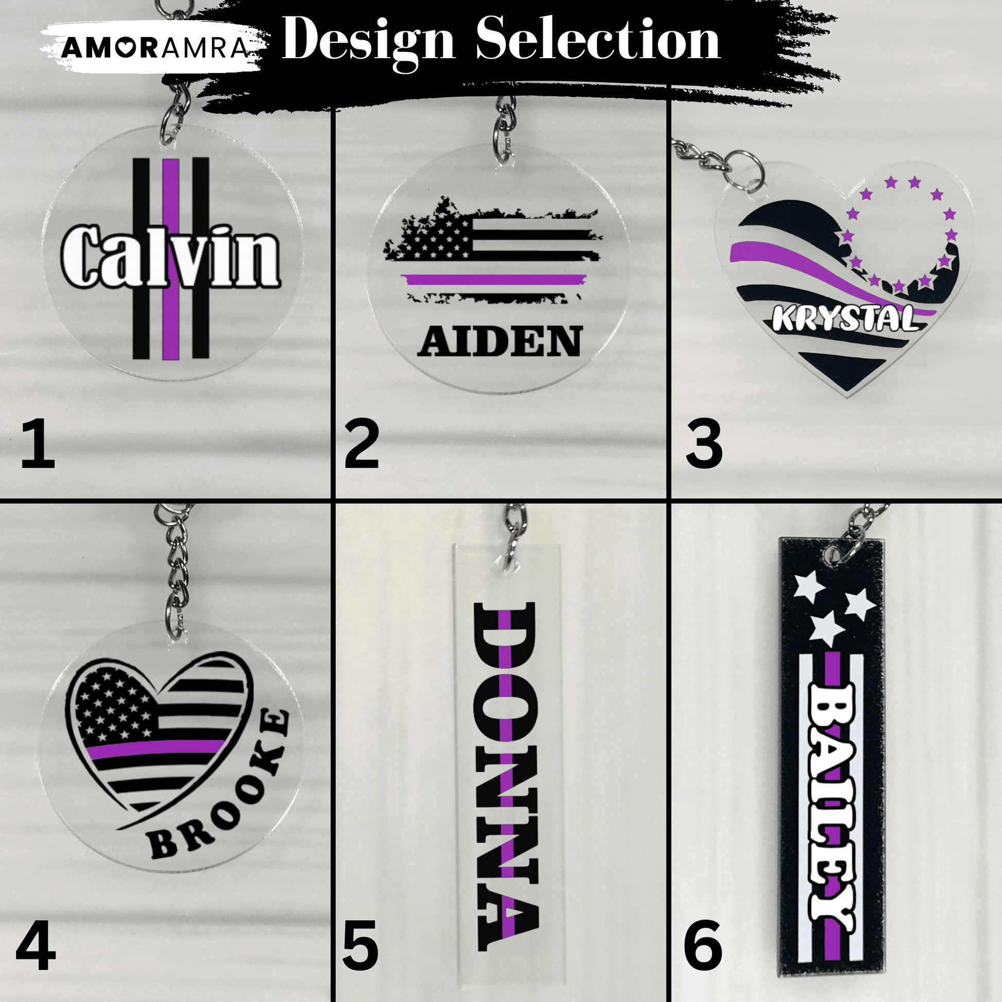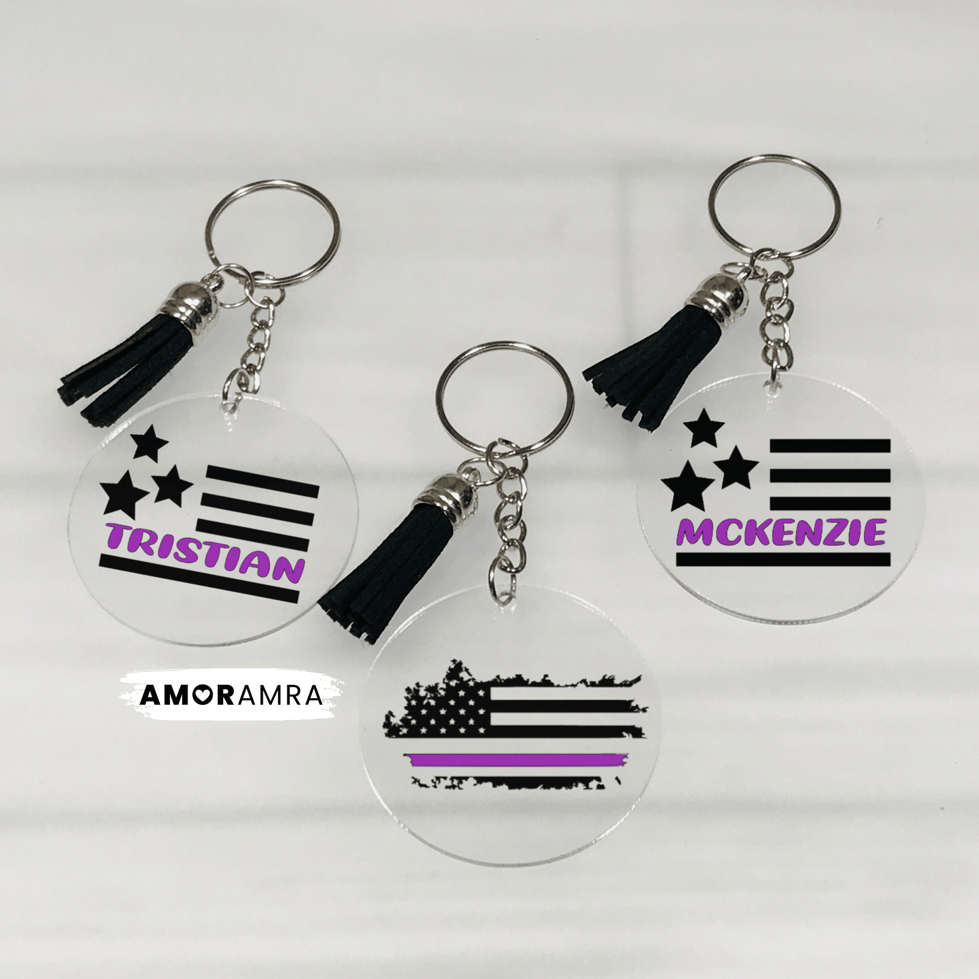 A handmade personalized thin purple line keychain just for you. Perfect gifts for co-workers.