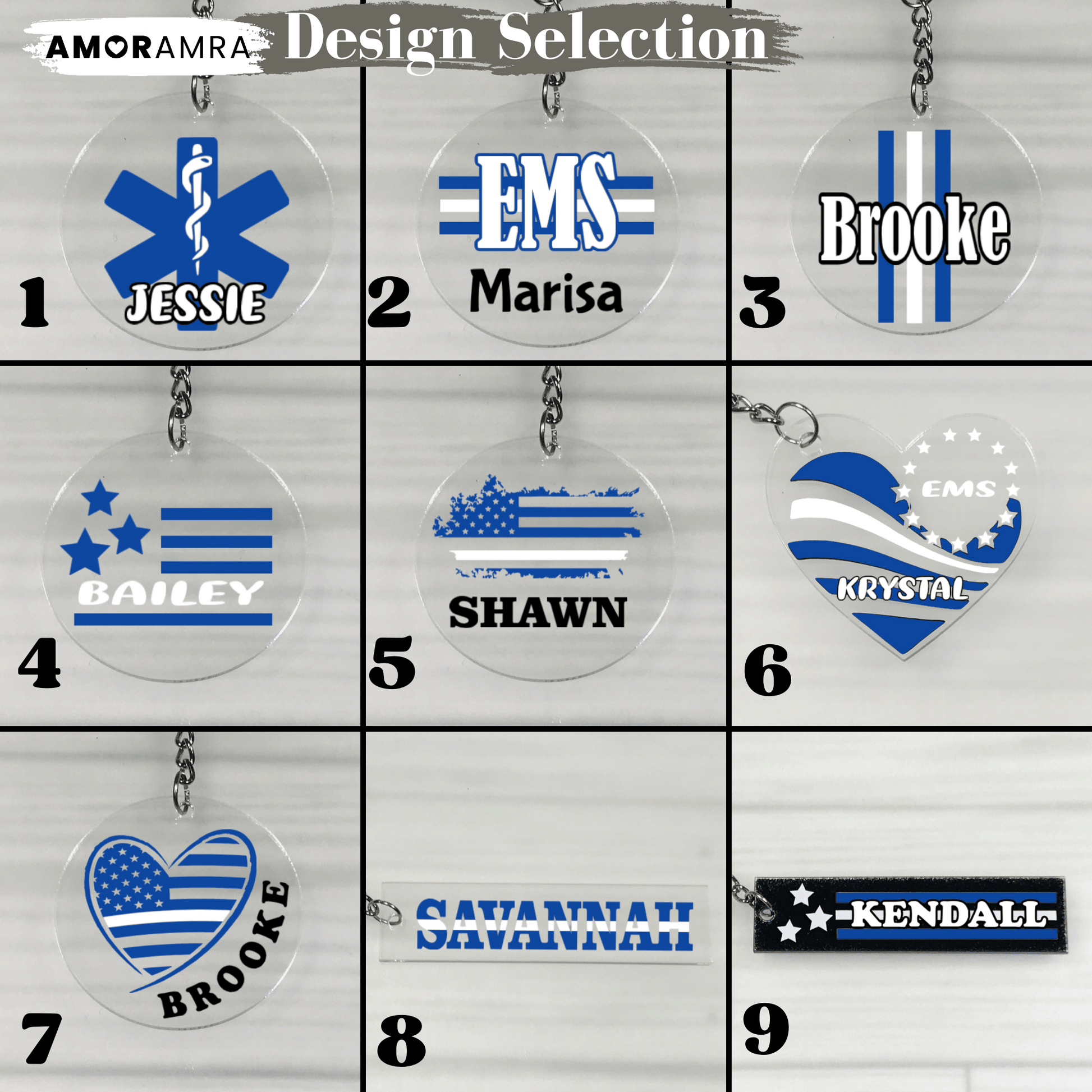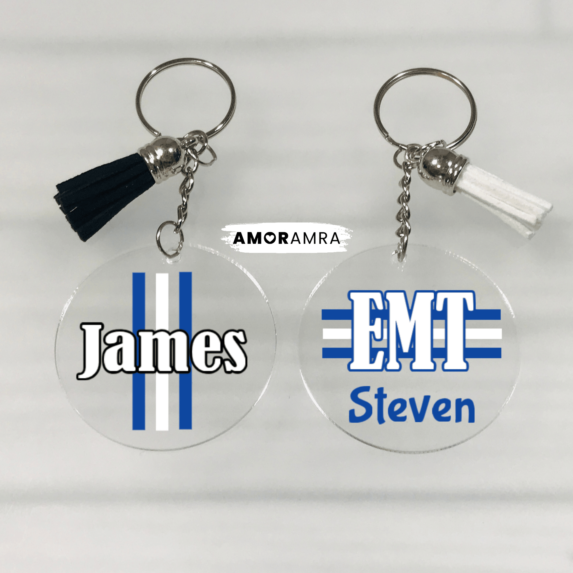A handmade personalized thin white line keychain just for you. Perfect gifts for co-workers and all emergency medical services personnel.