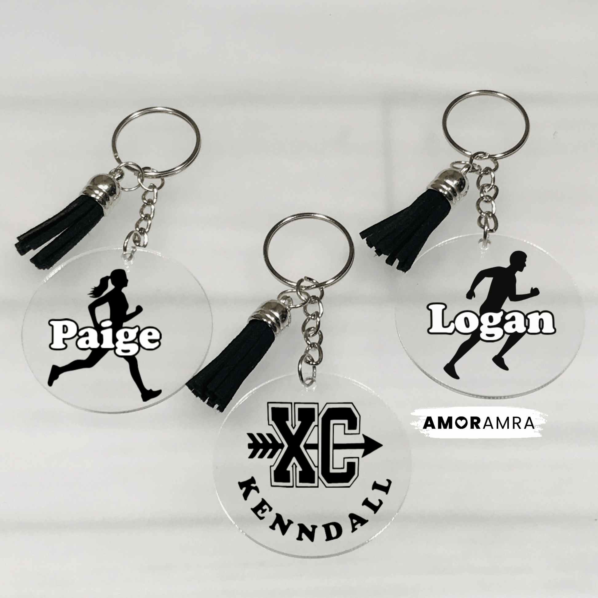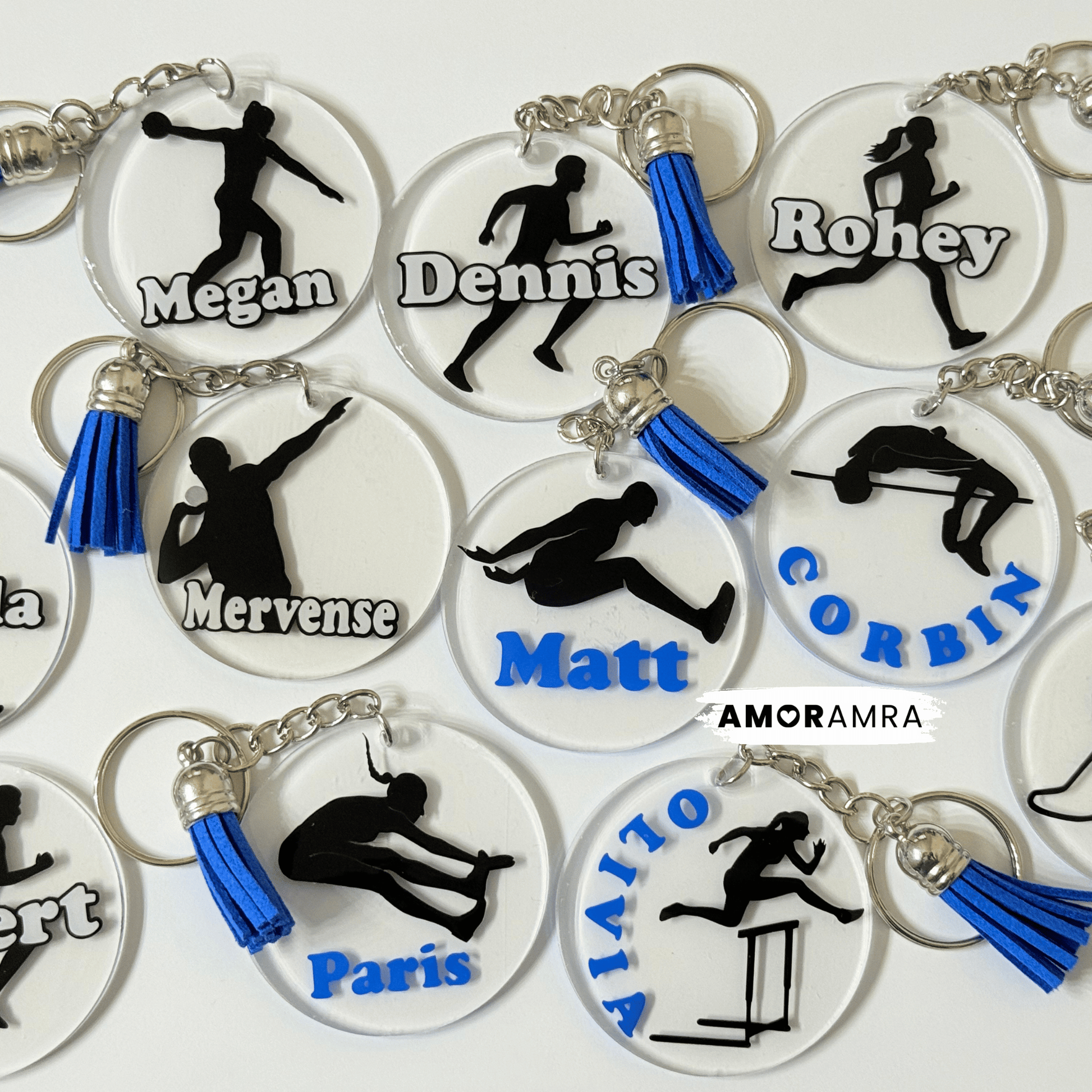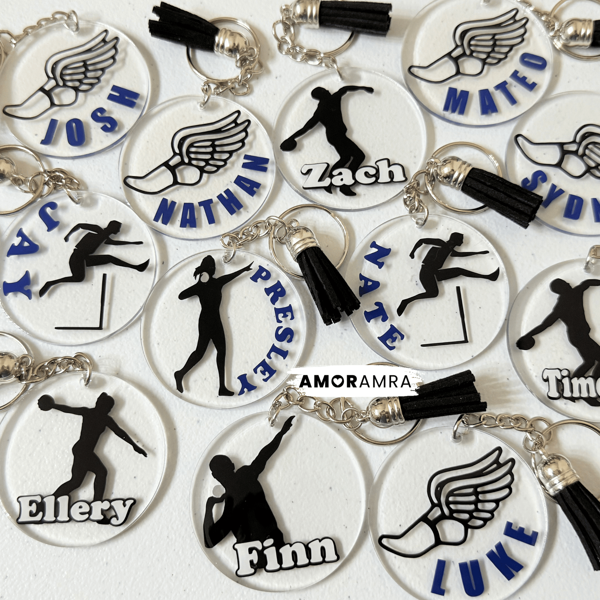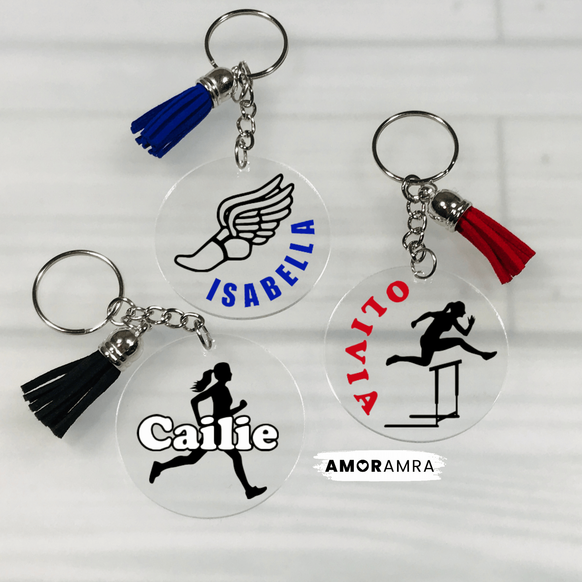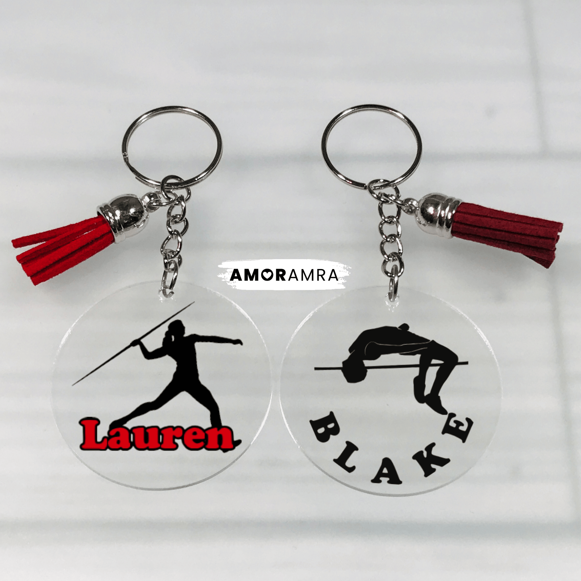 A handmade personalized track & field keychain just for you. Perfect for gift bags, track moms, track teams, senior night gifts, bag tags etc.