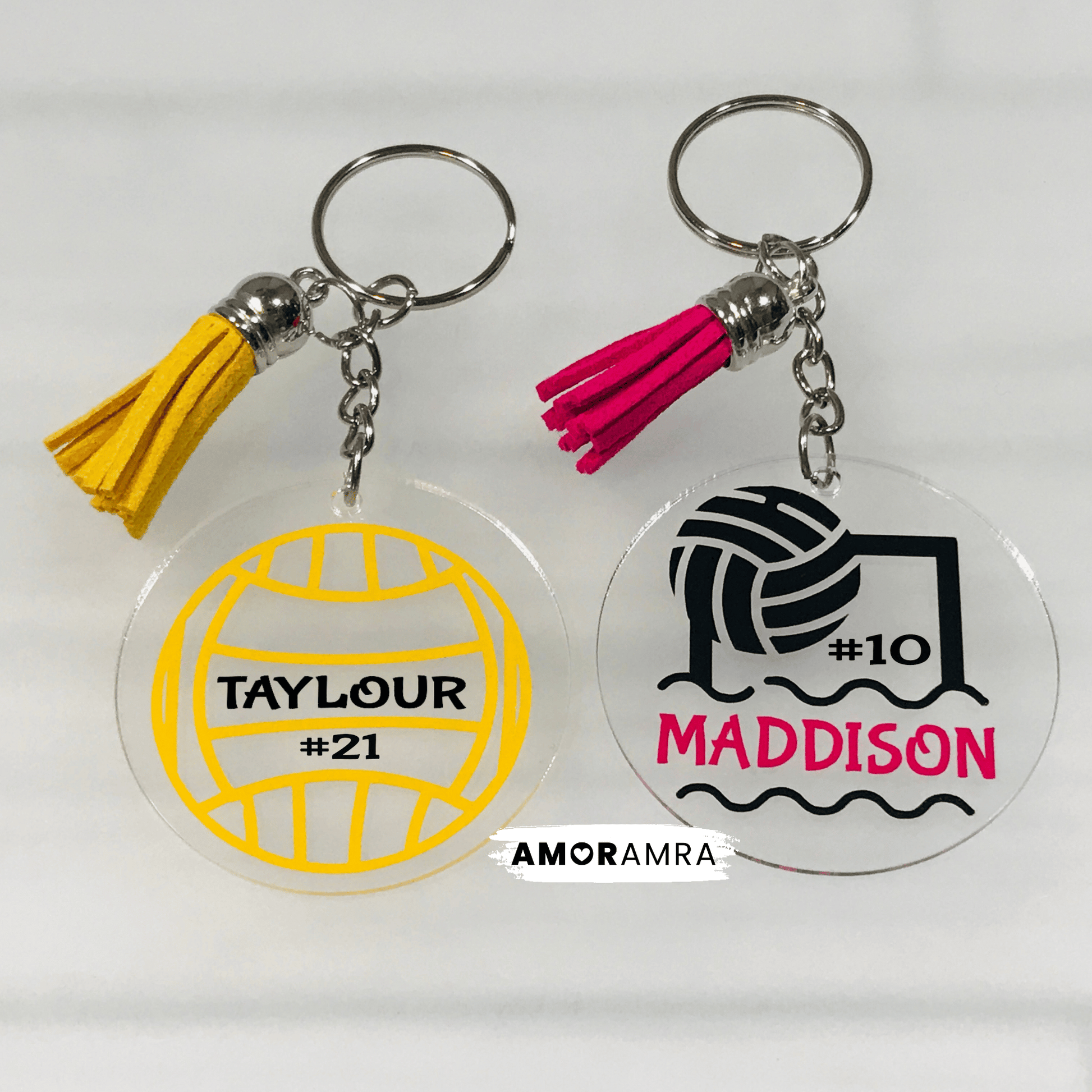 A handmade personalized water polo keychain just for you. Perfect for gift bags, teams, coaches, backpacks, bag tags etc.
