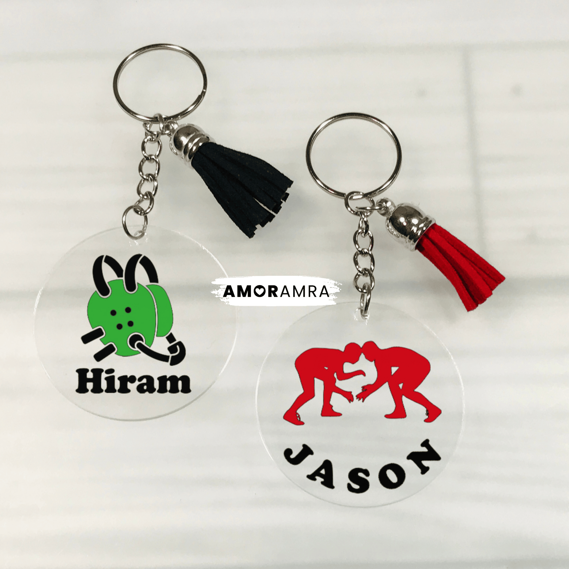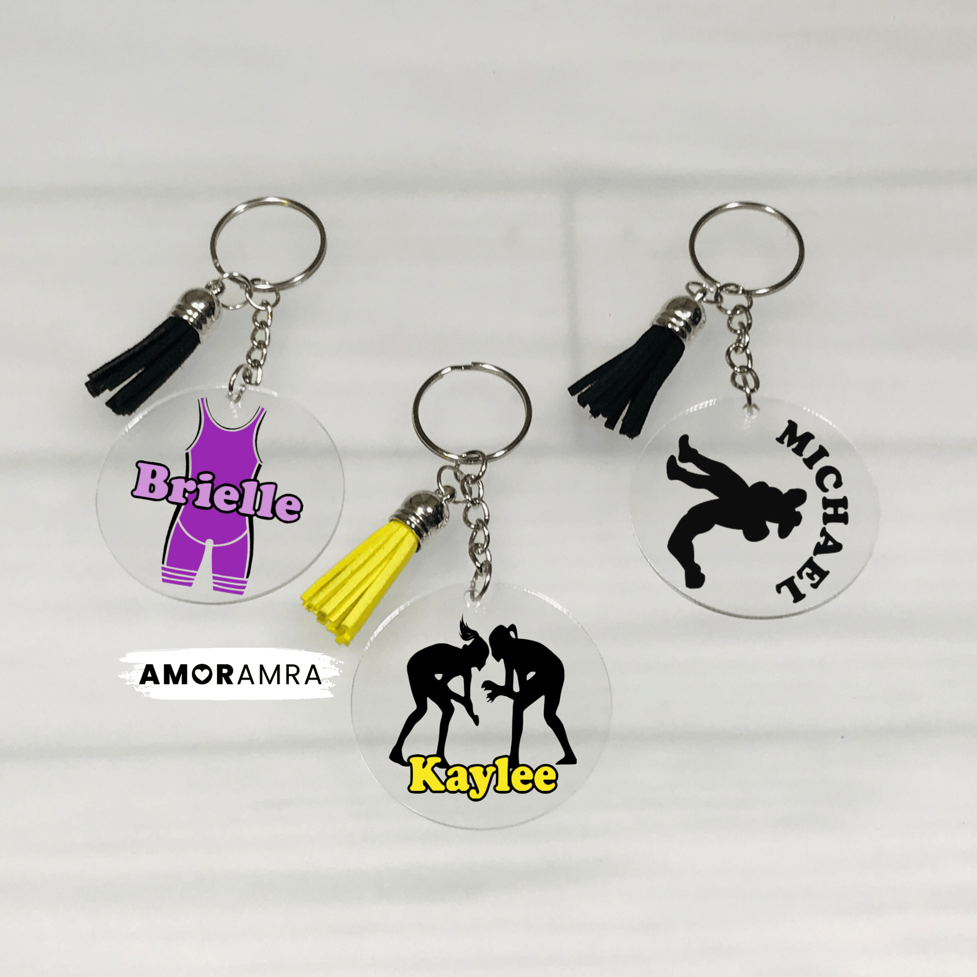 A handmade personalized wrestling keychain just for you.
