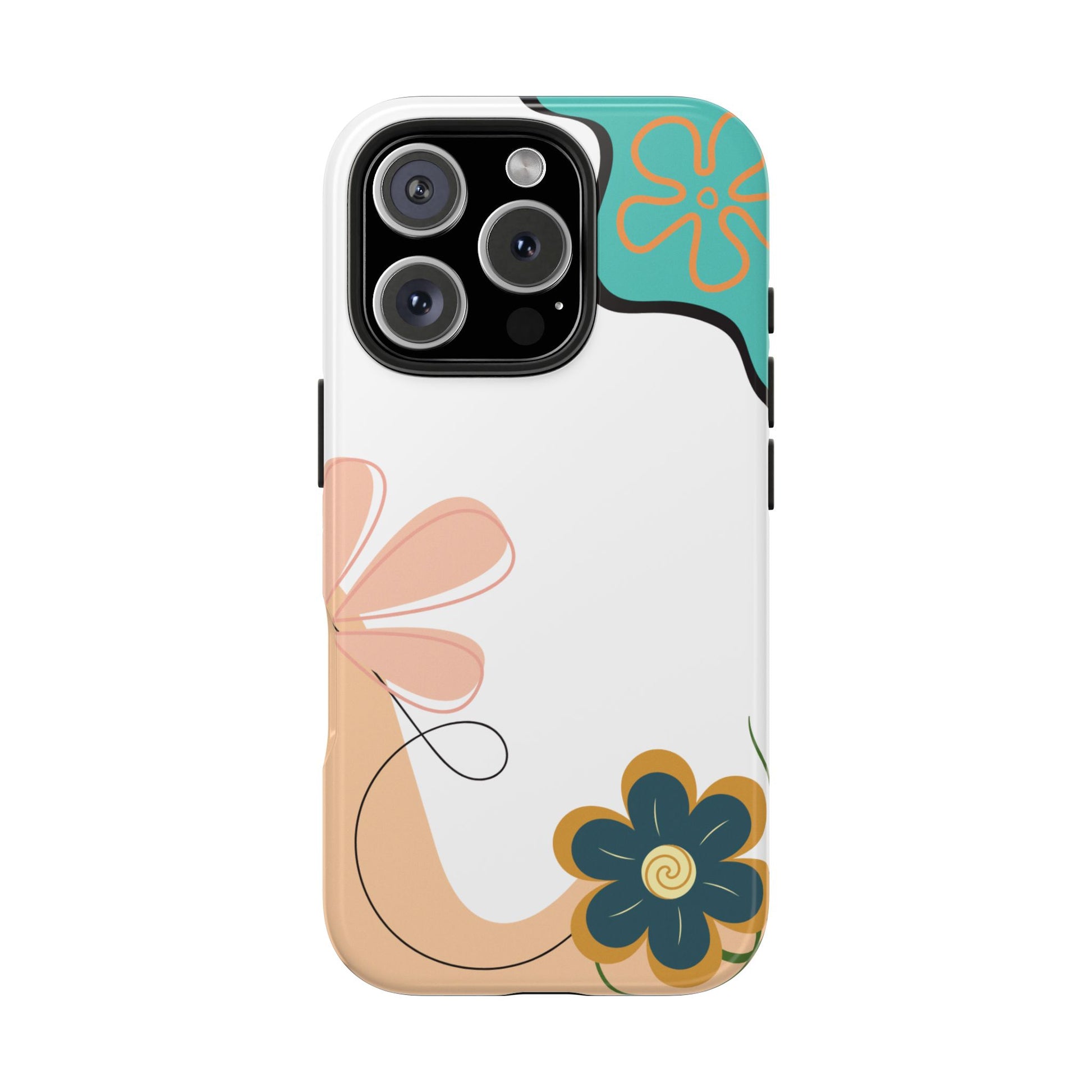Peace, love, and perfect phone protection. This bold and playful iPhone case is a whole mood, bursting with retro florals, curvy lines, and earthy pops of teal, peach, and mustard that’ll transport you straight to the sunny side of the ‘70s. Whether you’re channeling flower child energy or just want your tech to match your boho soul, this case brings serious vibe check to every scroll.