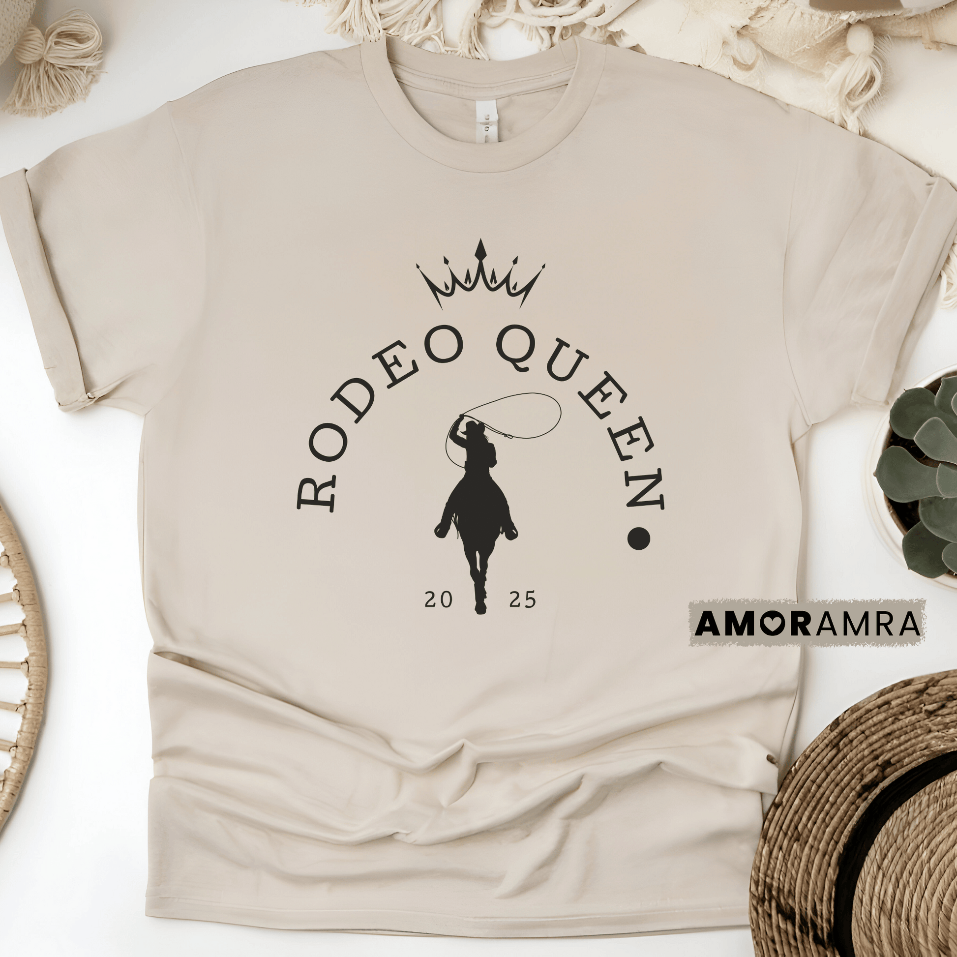 The 'Rodeo Queen' t-shirt, Perfect for cowgirls, western fashion lovers, and anyone who’s passionate about rodeo and country life. The bold Rodeo Queen design makes it a great gift for women who enjoy rodeo events, western chic style, or country concerts. Stay stylish while embracing your love for cowgirl fashion, rodeo queens, and country western clothing with this fun, comfortable t-shirt.