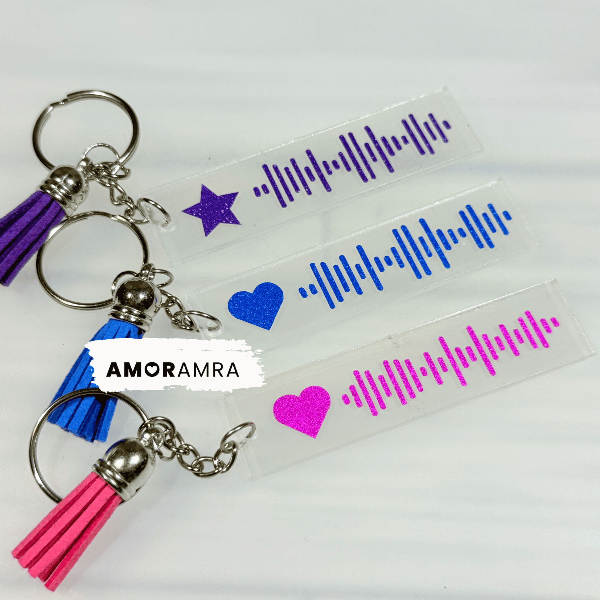 A handmade personalized song keychain with tassel just for you. These are perfect for gift-giving: birthday gift, Christmas gift, just because gift, personal gift, anniversary, or wedding gift.