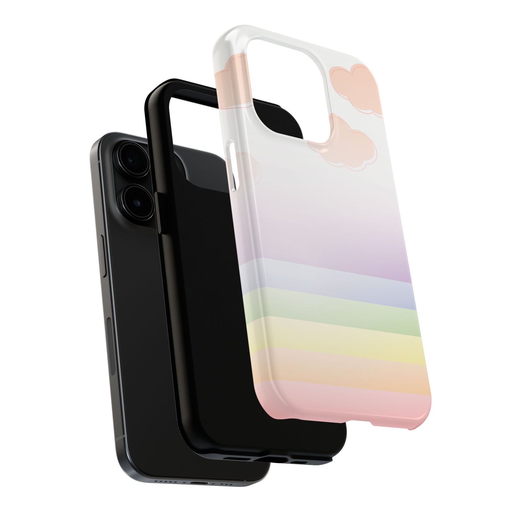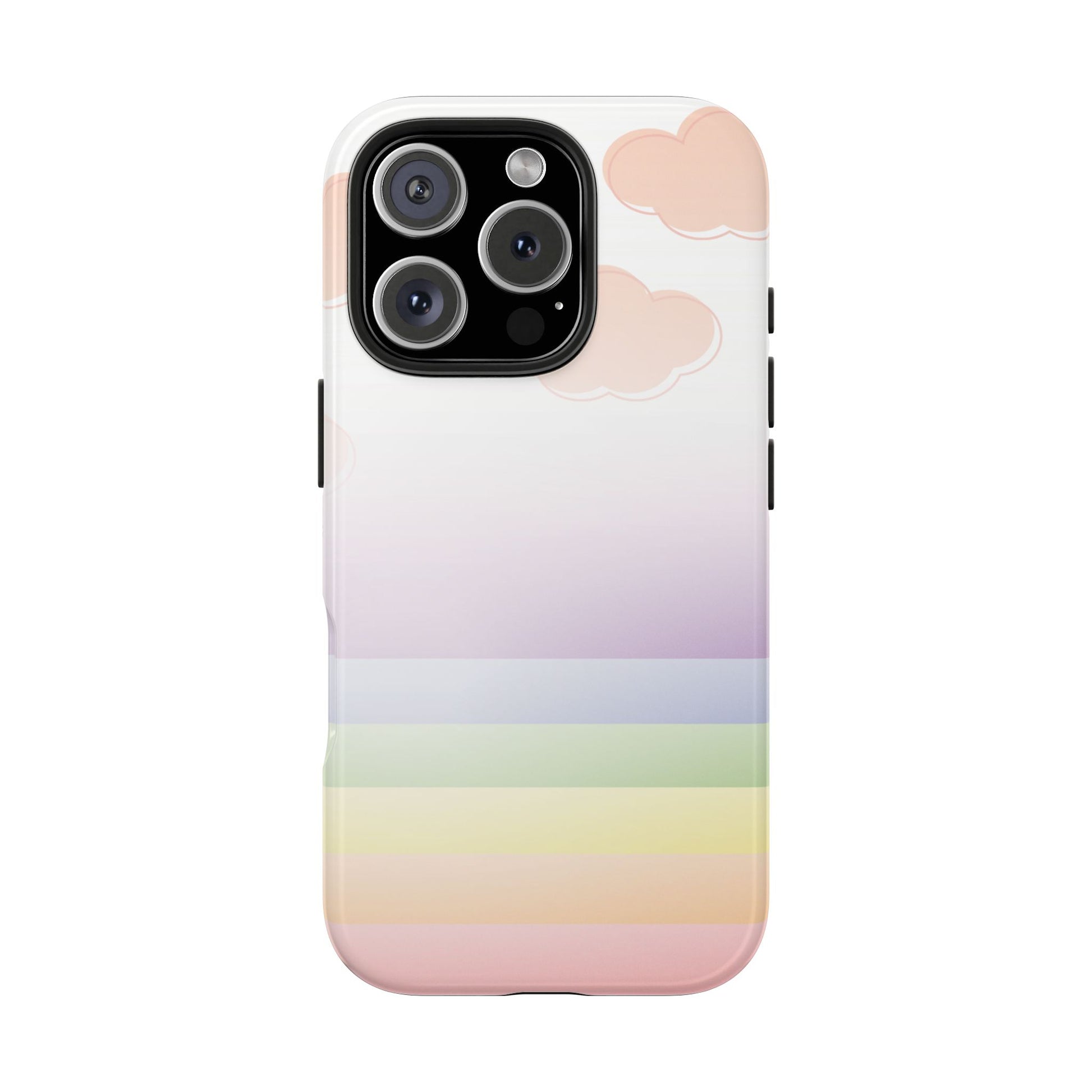 Float through your day with this dreamy pastel cloud iPhone case, a soothing blend of blush clouds and subtle rainbow tones designed to calm your space and your screen. With a gentle gradient of lavender, peach, mint, and sky blue, this case feels like a warm evening sky after the rain.