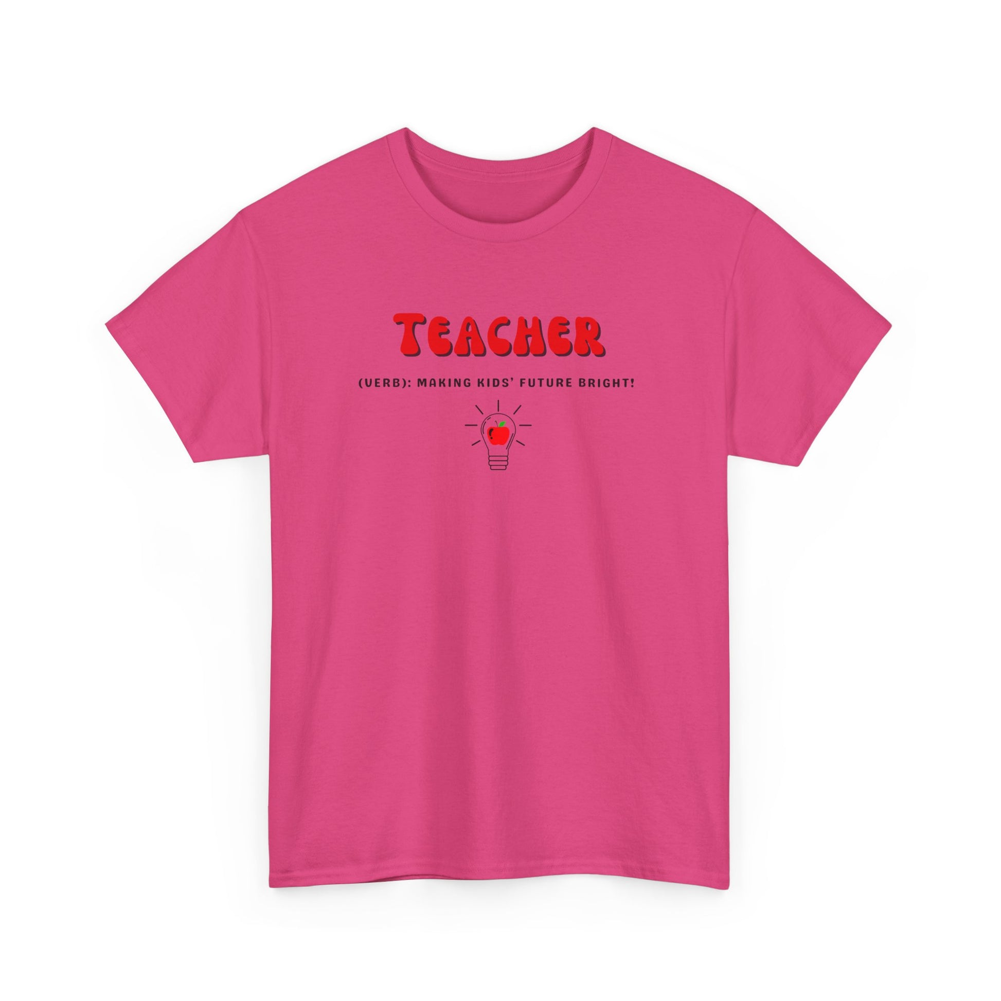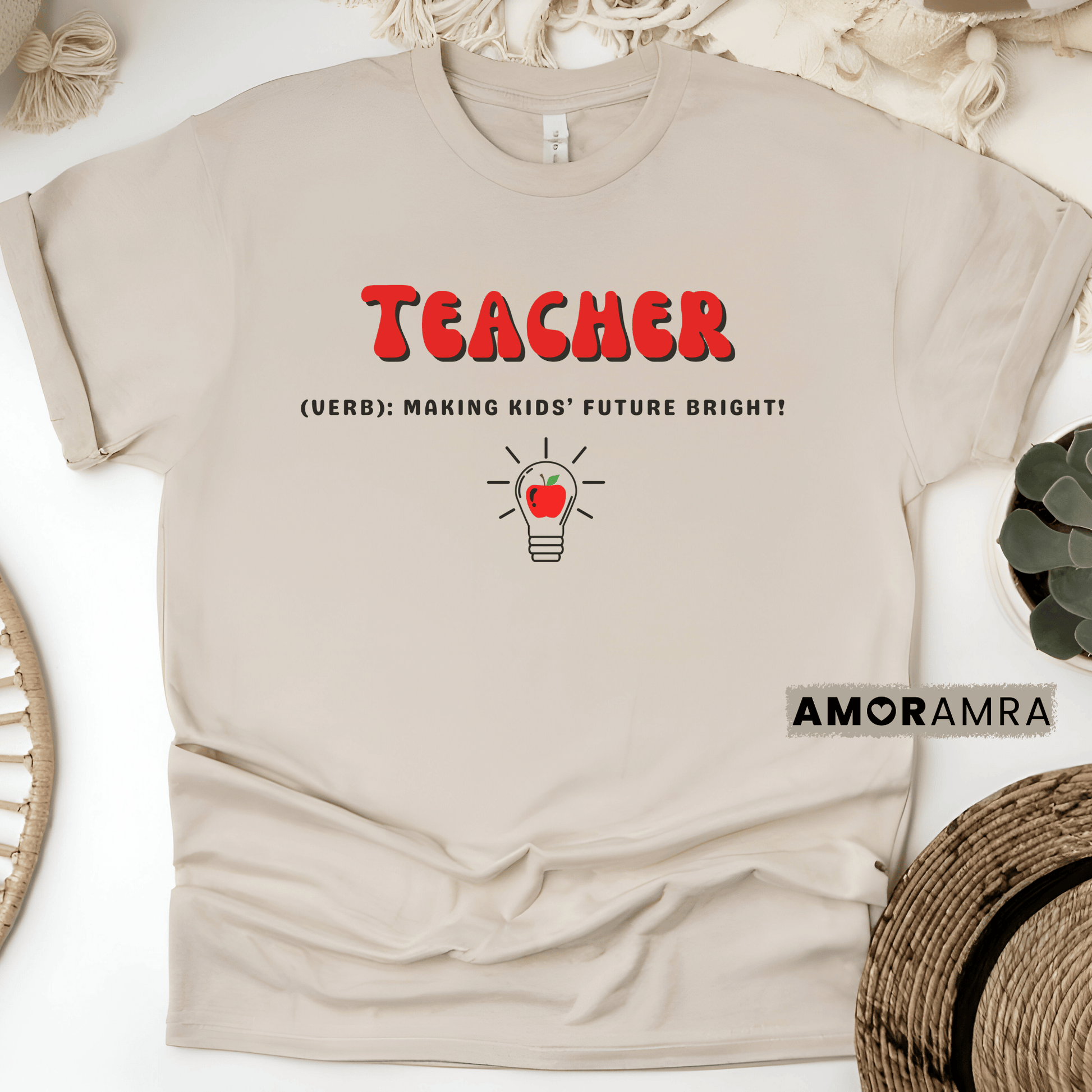 The 'Teacher Making Kids’ Future Bright' t-shirt is perfect for dedicated educators. Whether you’re an elementary school teacher, middle school educator, high school instructor, or college professor, this motivational teaching t-shirt is a must-have for your wardrobe. Made for passionate teachers, this cute and comfortable teacher tee is great for wearing in the classroom, school events, or casual outings. It also makes the perfect gift for Teacher Appreciation Week, back-to-school gifts, end-of-year teacher gifts, Christmas presents, and birthday gifts for educators.