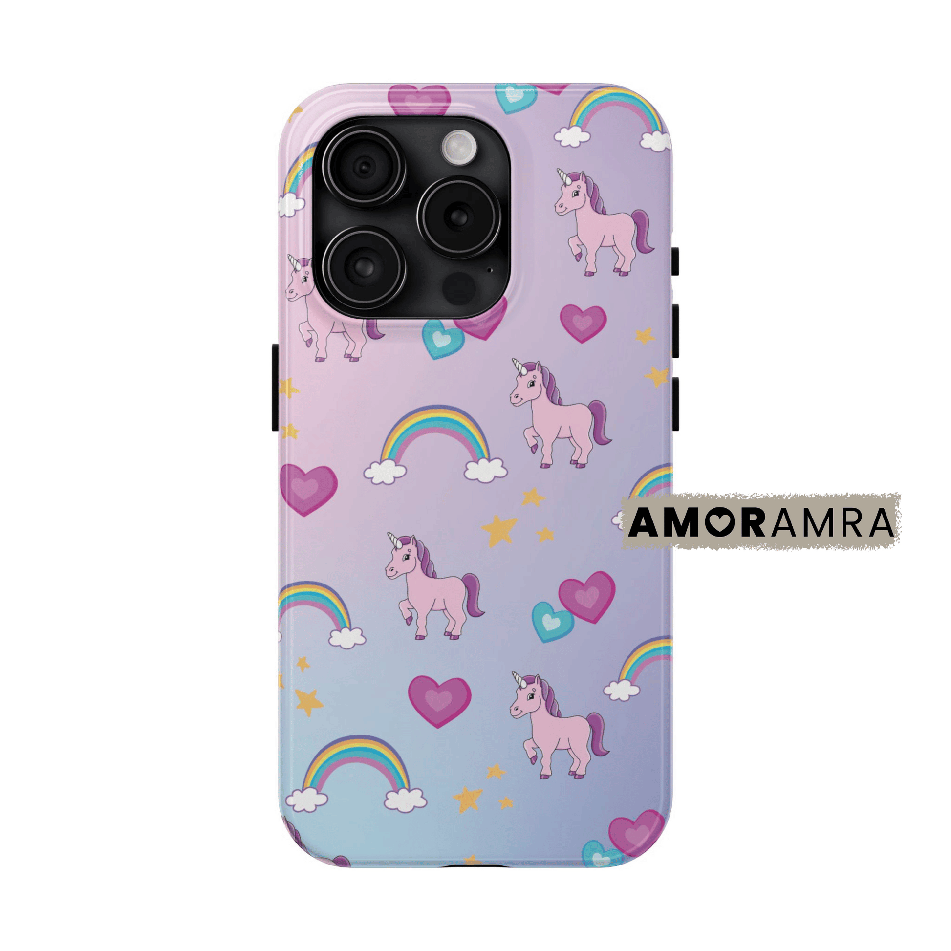 Add a touch of magic and fantasy to your everyday essentials with this adorable unicorn and rainbow iPhone case. Designed for unicorn lovers, or those that simply love cute and colorful designs, this phone case is the perfect way to express your inner sparkle and joy.