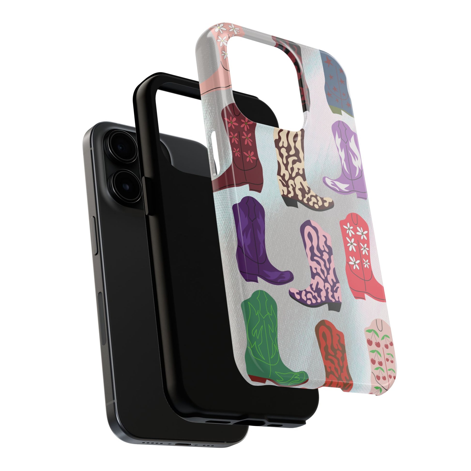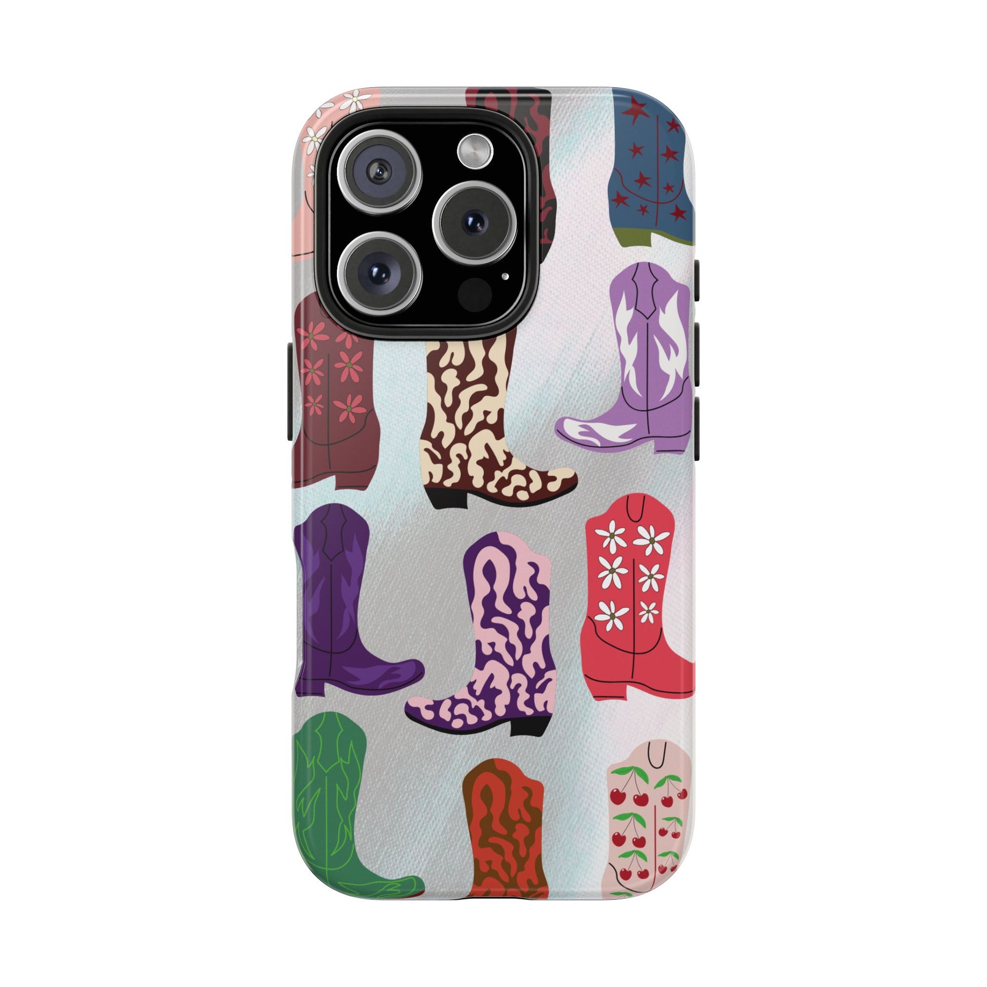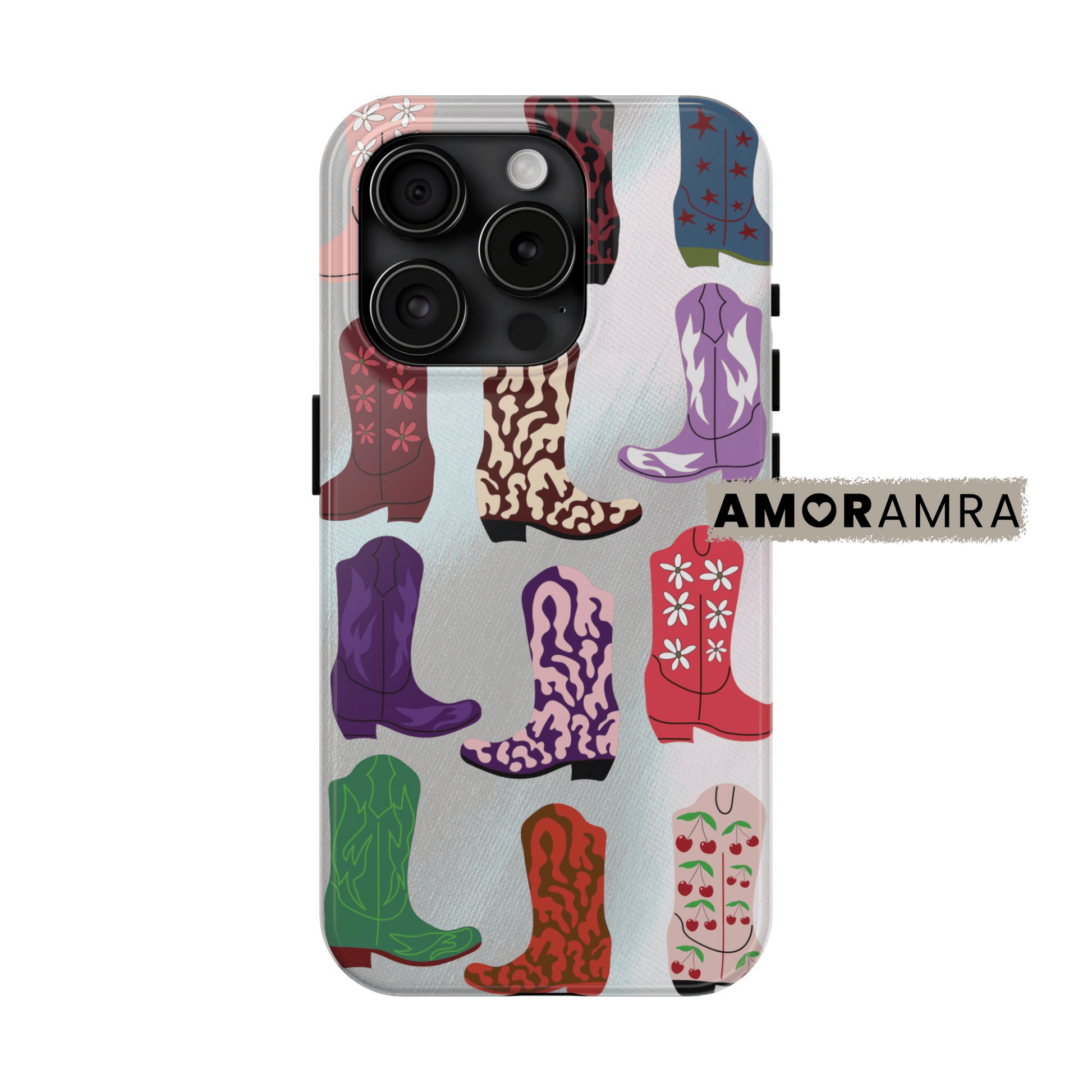 Show off your western spirit with this bold and stylish cowboy boots iPhone case, featuring an all-over print of boots in every classic and colorful style. Perfect for cowgirls, rodeo fans, boot collectors, and anyone who loves the country lifestyle, this fun phone case brings rustic charm and southern flair to your everyday look.